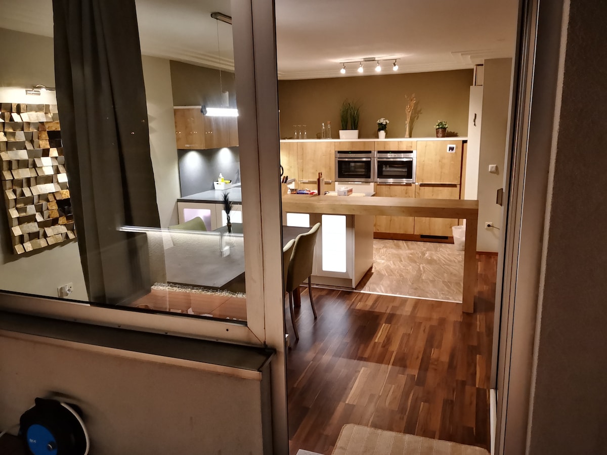 Butas su vaizdu į vandenį/žalią vaizdą. Eikite tiesiai iš namo į kaimą palei senąjį Dunojų. Savarankiškas atvykimas, garažas tiesiai namuose gali būti nuomojamas už 15 € per dieną, liftas iš garažo palengvina atvykimą /išvykimą. U-Bahn stotis Alte Donau (U1)tiesiai prie tilto, 9 minutės iki miesto centro, galimybė maudytis tiesiai priešais namą. Televizorius visiems valdybos nariams, internetas Wi-Fi, svetainė-valgomasis su vaizdu į vandenį, Laisvalaikio patalpos, bėgiojimas dviračiais, prekybos centras kitoje gatvės pusėje, labai geri restoranai
