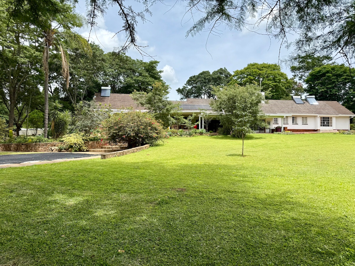Modernus, dviejų miegamųjų, šiaudinis kotedžas, apsuptas natūralių ir apželdintų sodų. Puikiai tinka ramiam poilsiui su šeima, draugais ar net pavieniui kelionei. Tik 6 km nuo Hararės miesto centro. Turime greitą internetą, „Apple“ televizorių, dujinį karštą vandenį, galingą saulės energijos atsarginę sistemą, baseiną, gerai įrengtą virtuvę su dujomis ir elektrine virykle, indaplove ir kt. Galime išnuomoti 2016 m. „Nissan Xtrail 4x4“ (žr. nuotraukas) ir papildomą „Starlink“.