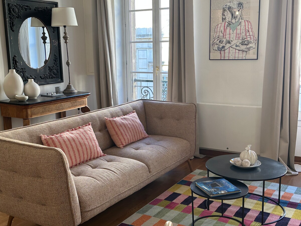 Butas, esantis pačioje Avinjono širdyje, buvo atnaujintas ir siūlo visus patogumus, reikalingus jūsų viešnagei. Labai tylus ir šiltas, su kruopščiomis dekoracijomis, bute yra oro kondicionierius, greitas Wi-Fi ir išmanusis televizorius, kad pagerintumėte vakarus. Lankytinos vietos yra vos už kelių minučių kelio pėsčiomis: Halles gastronomijos turgus, Place de l 'Horloge, Palais des Papes, Rocher des Doms ir Pont d' Avignon!