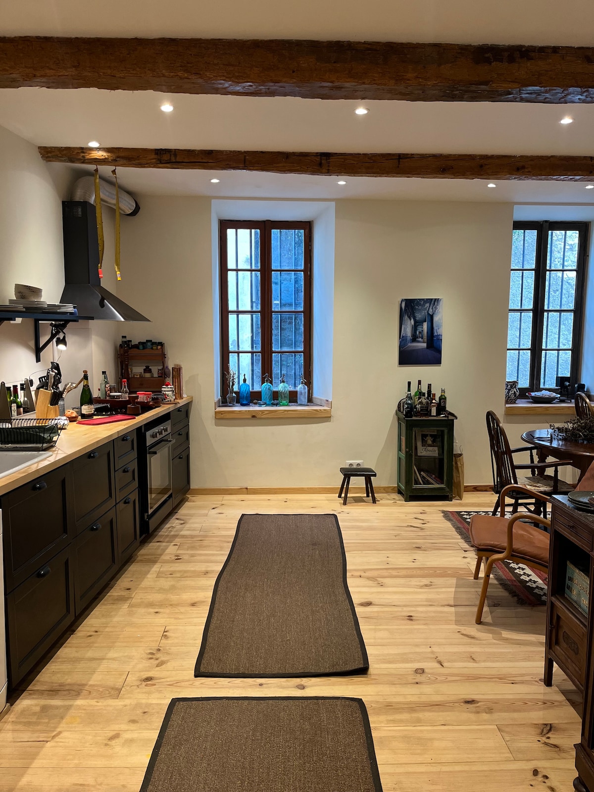 Bienvenue dans cet ancien affenage du XVIIe siècle entièrement reconverti en loft de caractère. Il offre de beaux volumes avec une grande pièce de vie lumineuse et une cuisine ouverte conviviale. Il dispose de 3 chambres, 2 salles de bain et d'un garage pour 2 véhicules. Idéalement situé au cœur de Carcassonne, à 50 m des Halles, restaurants et commerces, et à 15 minutes à pied de la Cité de Carcassonne. Maison entièrement climatisée.
