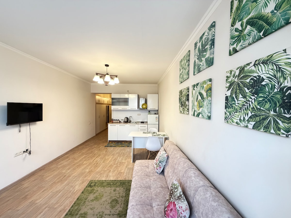 Šis naujas studijinis butas (įsikūręs Sayat-Nova gatvėje) yra jaukus ir stilingas. Jis lengvas, turi aukštas lubas ir turi viską, kad būtų patogu apsistoti, tarsi būtumėte viešbutyje. Yra nedidelis balkonas, WiFi 80mb/s internetas, 42'' LED televizorius, šaldytuvas, skalbimo mašina, mikrobangų krosnelė, skrudintuvas. Respublikos aikštė ir laisvės aikštė (operos teatras), kavinės/restoranai, parkai, galerijos, parduotuvės, metro iki 5 minučių pėsčiomis. Mano namai tinka poroms ir pavieniams nuotykių ieškotojams. Gali apsistoti iki 2 svečių.