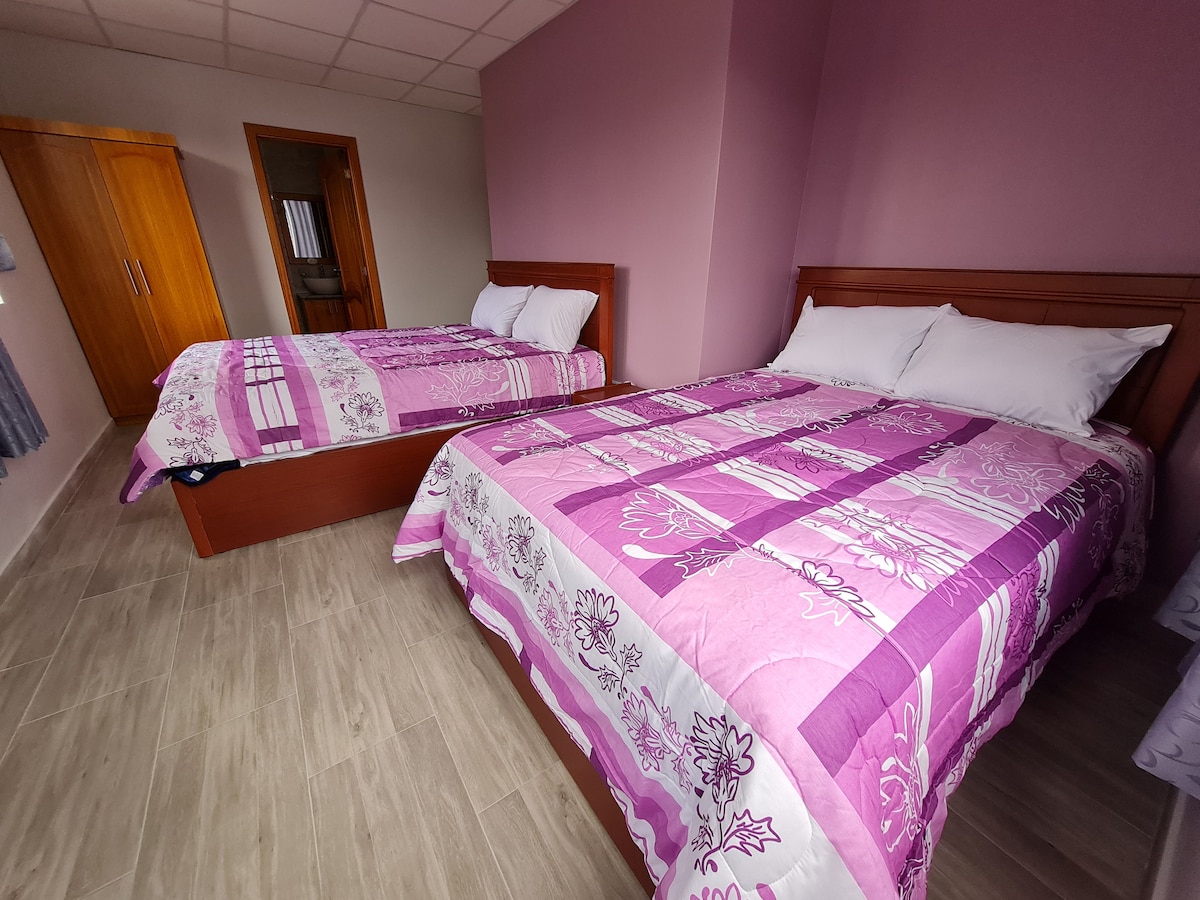 Patogus kambarys su atskiru vonios kambariu. Įsikūręs netoli parkų: Los Caciques, El Paraíso, Parque Lineal; ligoninės zona: Vicente Corral Moscoso ligoninė, Solca ir Centro Maternoinfantil; ir daugelis restoranų. Puikiai tinka žmonėms, keliaujantiems darbo ar sveikatos tikslais. ¡Viešbučio komfortas su puikiais įkainiais ilgesnėms viešnagėms! Kelių kambarių nuotraukos pateikiamos atsižvelgiant į užimtumą. Jie visi turi: dvigulę lovą, karštą vandenį, Wi-Fi, išmaniąją televiziją. Tik virtuvė yra bendro naudojimo.