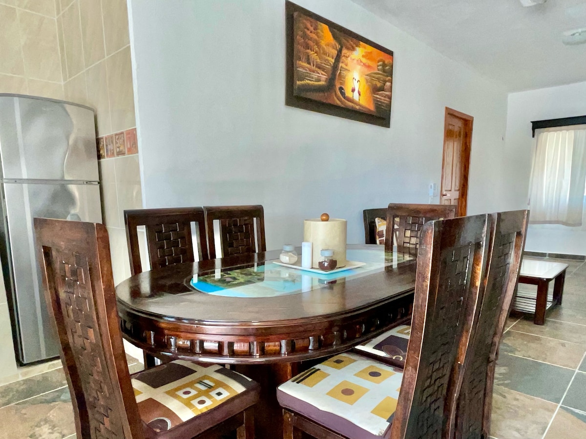 Vos už 10 minučių kelio pėsčiomis nuo marių, Casa Mayali yra unikalaus dizaino, įsikūręs patogiame ir tradiciniame vietiniame rajone. Graži terasa yra pagrindinė gyvenamoji erdvė, leidžianti integruotis į turtingą Bacalar atogrąžų grožį. Mėgaukitės giliomis voniomis, oro kondicionieriumi, ortopediniais čiužiniais, pilnai įrengta virtuve ir skalbykle/džiovykle. Šis nepriekaištingas dizainas su apgalvotais akcentais suteiks jums unikalią atmosferą vos už kelių minučių kelio pėsčiomis nuo Ecoparque Bacalar.
