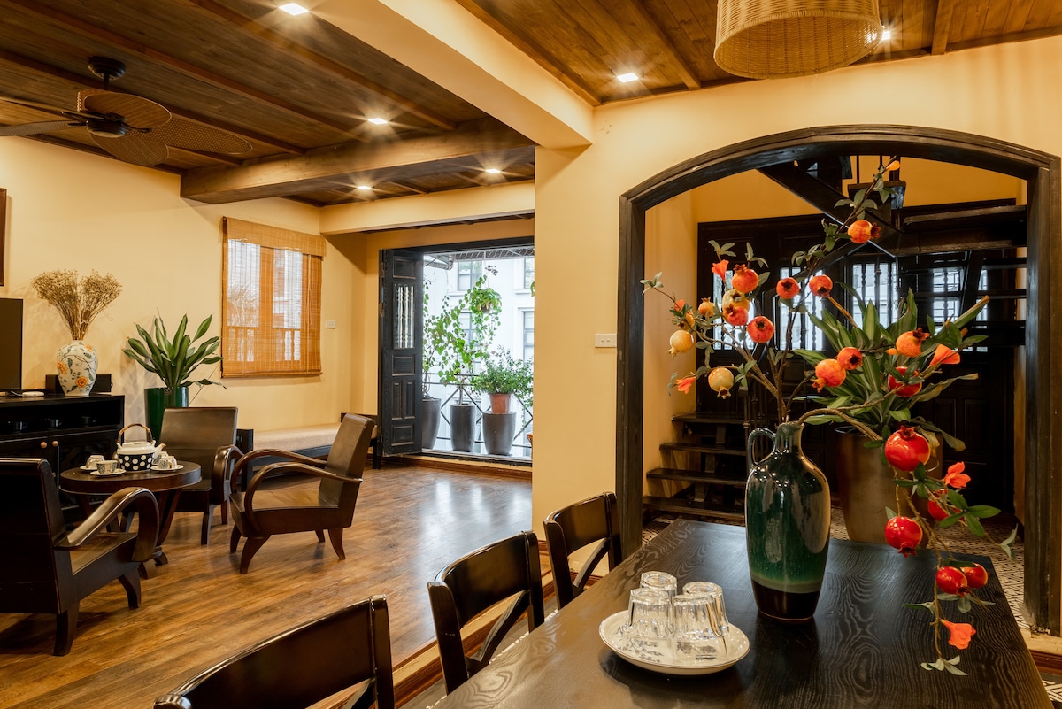 Jauki vila miesto centre su privačiu sodu, tradicinio vietnamietiško žavesio ir meninės komforto išraiškos deriniu. Įsikūrę palei Raudonąją upę, pateksite į gyvybingą vietinį turgų, kuriame gausu šviežių daržovių, vaisių, gėlių ir gatvės maisto spalvų ir kvapų. Vos už 5 žingsnių mėgaukitės ikonišku vietiniu juoduoju alumi - tikru Hanojaus skoniu. Ši vila, esanti toli nuo turistų minios, siūlo autentišką potyrį. Vos už 6 min. kelio nuo Operos teatro.