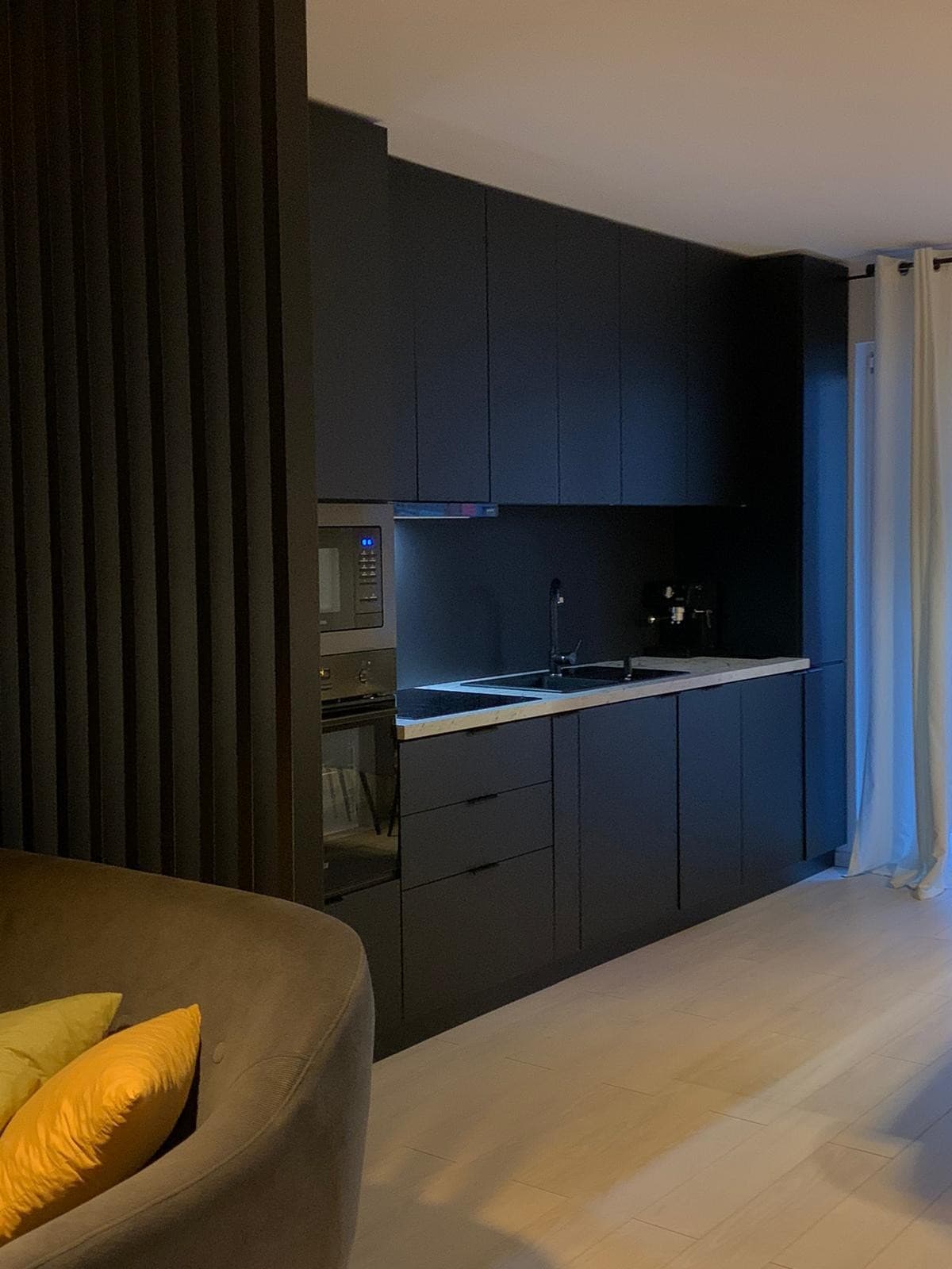 This apartment is not just a living space but a gracious and stylish setting, ideal for those who appreciate beauty in every detail. We invite you to experience an ambience that combines comfort with elegance. Here is a list of some features: Netflix Fully equipped kitchen with dishwasher LED strips Underfloor heating Walk-in shower 10 minutes by car from city center Extendable sofa Cozy lighting Supermarkets nearby We guarantee a comforting stay and a quick and efficient communication.