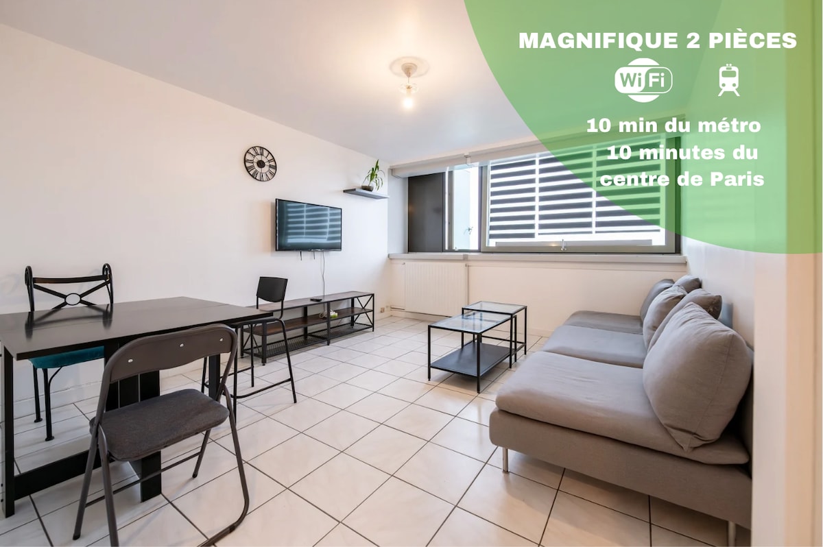 2022 m. renovuota žavinga maisonetė netoli Paryžiaus. Ir ramu, ir arti visų patogumų. Galite nueiti iki miesto centro ir restoranų. Netinka vyresnio amžiaus žmonėms ir mažiems vaikams, nes yra stačios laiptinės. Aptarnaujamas greitkeliu, 3 metro linija ( 10 min. pėsčiomis) ir 11 linija ( 15 min. pėsčiomis) bei 8 min. tramvajumi, po kelių minučių būsite Paryžiaus centre (30 min. pėsčiomis). Esame rytiniuose priemiesčiuose, priklijuotuose prie Paryžiaus.