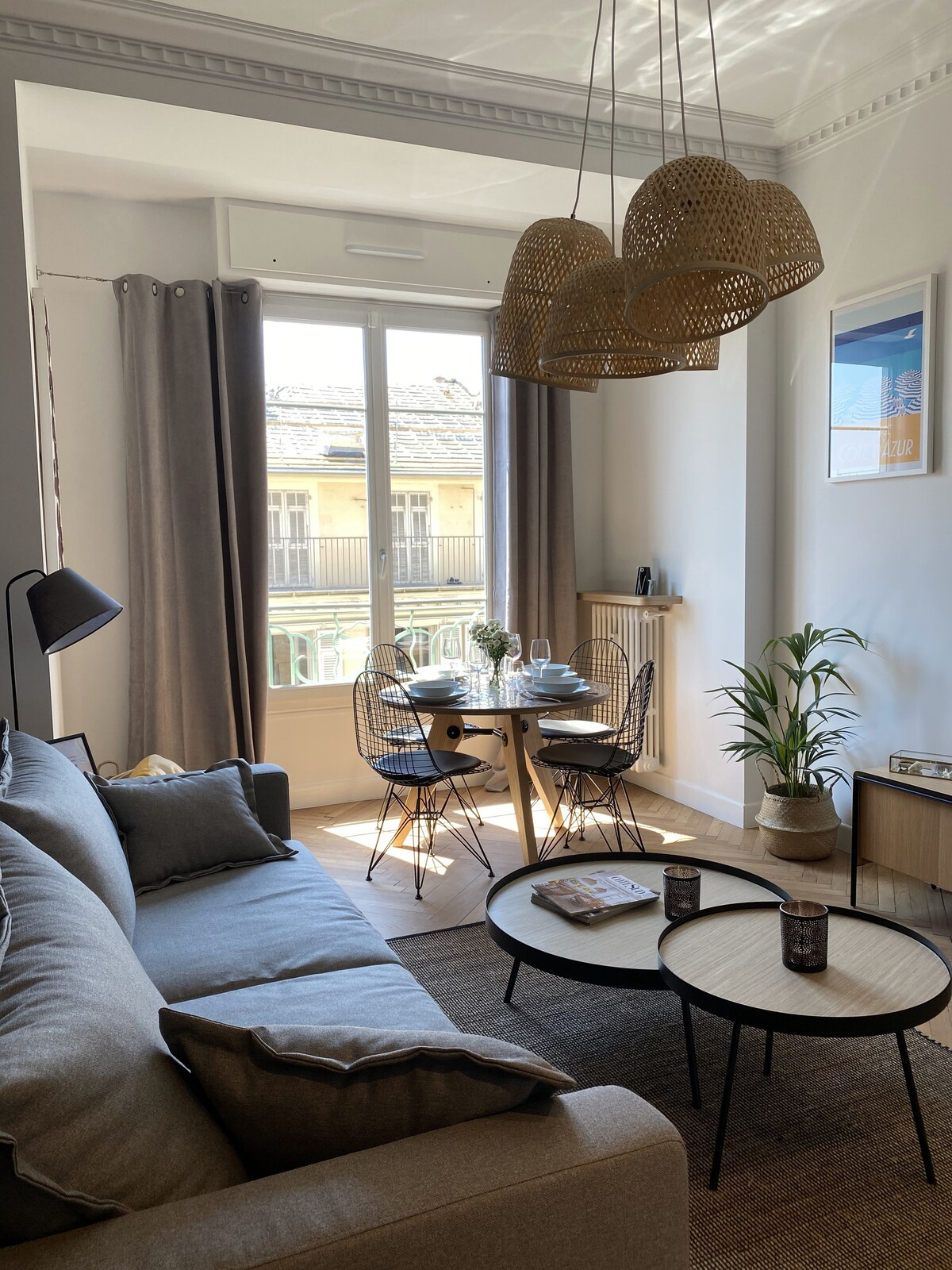 Unikali vieta susiduria su jūra žavinga aplinka, 20m nuo viešbučio Negresco, Westminster concords, nuo dienovidinio, susiduria su jūra. Jūs rasite visas parduotuves pastato papėdėje, autobusų tiesioginis ryšys su oro uostu pastato apačioje, paplūdimiai priešais, pėsčiųjų zona 50m, restoranai, parduotuvės ir ypač senas gražus. 3p 88m ² būstas yra patogus, turi didelę terasą, Wi-Fi ir, svarbiausia, visiškai renovuotas. galima lovelė ir kūdikio kėdutė