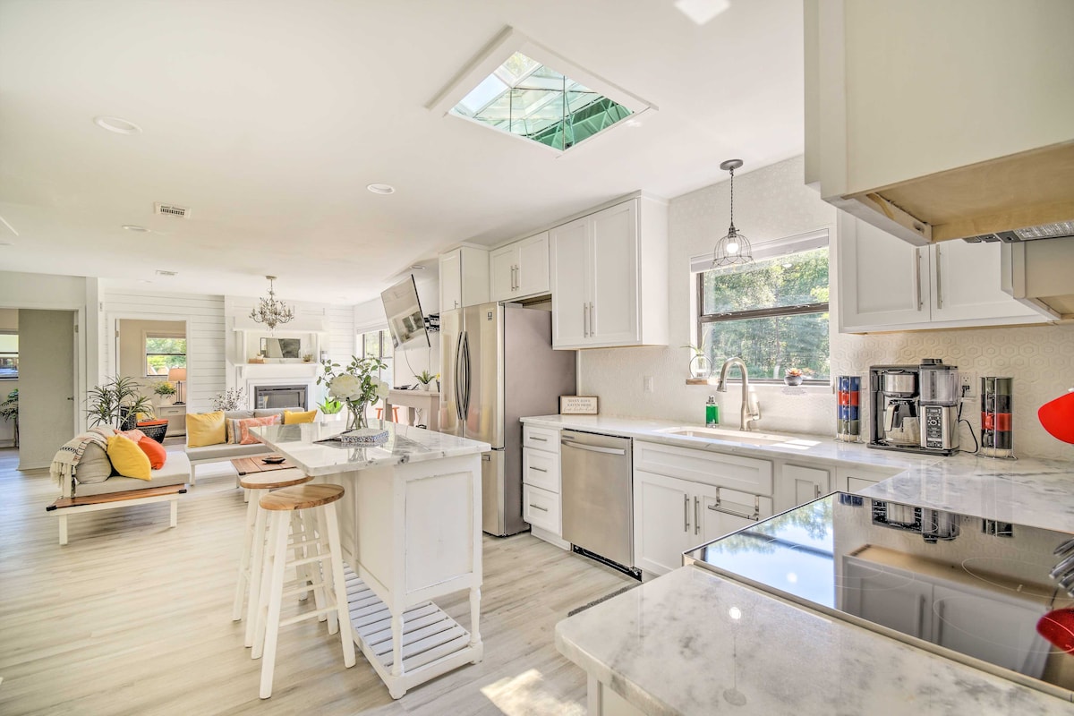 Pasimėgaukite Alabamos pakrantės išvyka į šią 3 miegamųjų, 2 vonios kambarių atostogų nuomą saulėtame Foley! Mėgaukitės ramybe pajūrio palei Persijos įlankos valstybinio parko pėsčiųjų takus, tyrinėkite begalines šeimos pramogas The Wharf arba eikite į Persijos įlankos pakrantes, kad pasinaudotumėte 32 mylių balto smėlio paplūdimiais ir šiltais Meksikos įlankos vandenimis. Pasibaigus dienos nuotykiams, grįžkite į šiuos modernius namus gaminti vakarienę ant grotelių ir atsipalaiduoti vandenyno įkvėptame interjere.