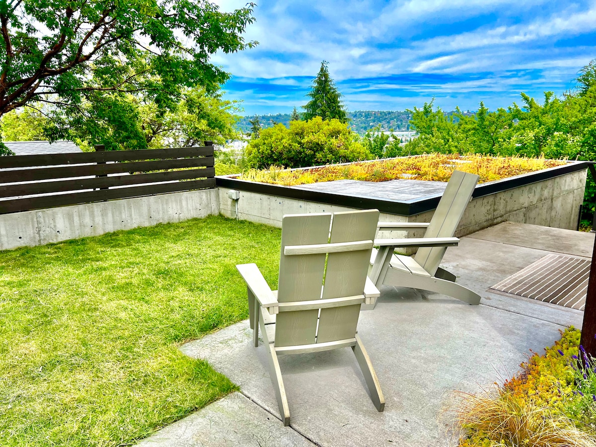 Atraskite mūsų prašmatnų, šiuolaikišką svečių namą, esantį ramioje, medžiais apsuptoje gatvėje netoli Sietlo širdies! Šiame išskirtiniame būste yra oro kondicionierius, kuris yra retas radinys Sietlo namuose, taip pat aukščiausios kokybės darbo vieta, idealiai tinkanti nuotoliniam darbui, ir patogus L2 elektromobilio įkroviklis. Iš mūsų svečių namų taip pat lengva pasiekti viešąjį transportą, o vos už kelių žingsnių rasite Žaliojo ežero restoranų, pramogų ir naktinio gyvenimo vietų. Švenčiame įvairovę ir priimame įvairios kilmės svečius.