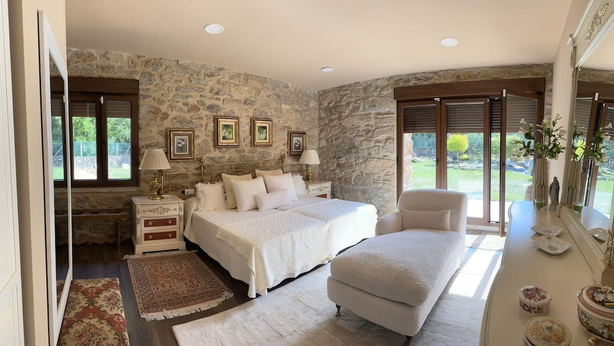 Senas sodybos namas restauruotas 2019 m., ramioje gyvenvietėje, už 4 km nuo Rianxo. Namo gale yra nedidelis sodas ir vaismedžių sodas, kuriame svečiai gali mėgautis rinkdami kiekvieno sezono produktus. Pasimėgauk šviežiomis salotomis...