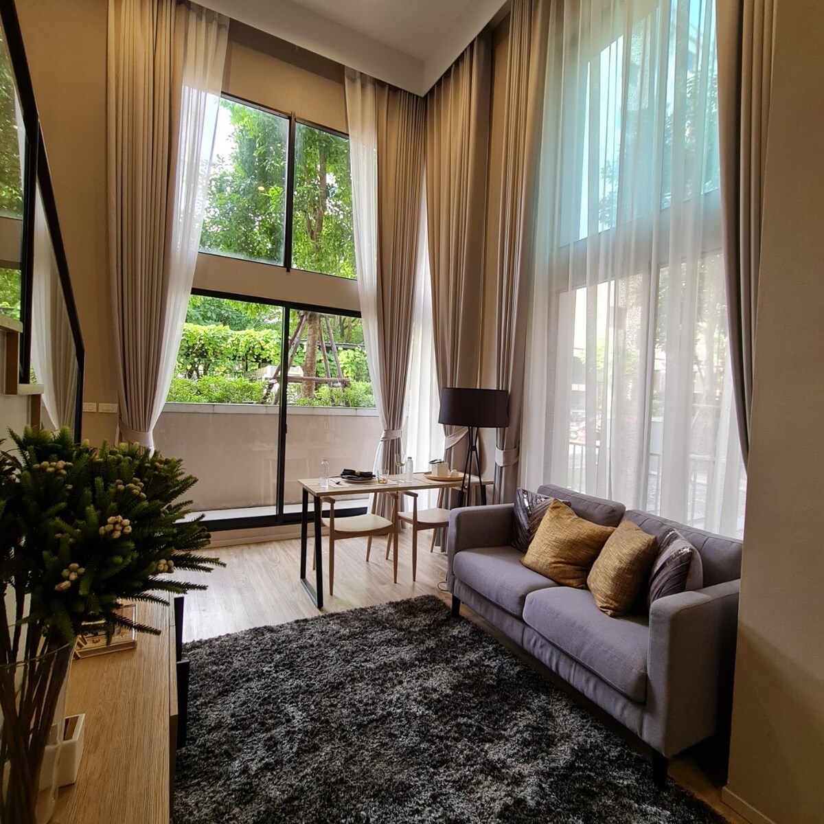 Sveiki atvykę į mūsų jaukų butą su aukštomis lubomis 27-ame Edge Sukhumvit 23 aukšte. Vos keli žingsniai nuo BTS Asok ir MRT Sukhumvit. Svetainė yra šviesi, su viso aukščio langais, o lofto stiliaus miegamajame yra ir viršutiniame aukšte esanti miegojimo erdvė, ir apačioje esanti darbo zona su papildoma lova. Geriausia tai, kad baseinas ir sporto salė yra tame pačiame aukšte, todėl viešnagės metu lengva atsipalaiduoti ir išlikti aktyviems.