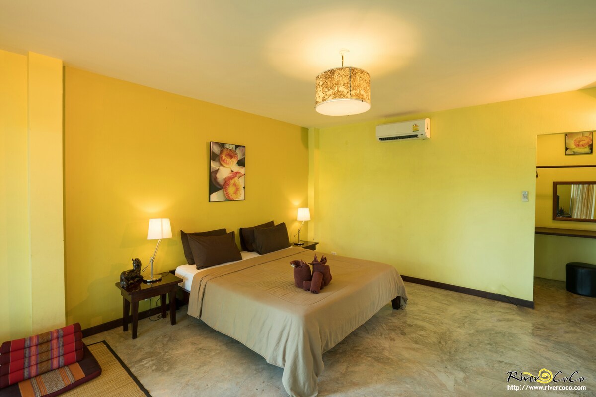 พักผ่อนสบายๆ ในที่พักเงียบสงบและมีเอกลักษณ์ ที่พักติดแม่น้ำแม่กลอง มีกิจกรรมทางน้ำ ใส่บาตรพระ ใกล้ตลาดนัดวัเคริสต์