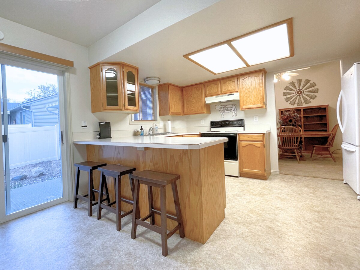 Atsivežkite šeimą ir atsipalaiduokite šiuose mieluose 850 kv. pėdų namuose! Du patogūs miegamieji su plačiomis dvigulėmis lovomis ir jauki svetainė su sofa-lova ir 65 colių televizoriumi suteikia daug vietos visiems. Pradėkite dieną kavos bare, o tada atsipalaiduokite aptvertoje terasoje. Ramus rajonas, lengvai pasiekiama greitkelis – 2 min. iki ISU, 4 min. iki ligoninės, 6 min. iki senamiesčio ir 30 min. iki Lava Hot Springs!