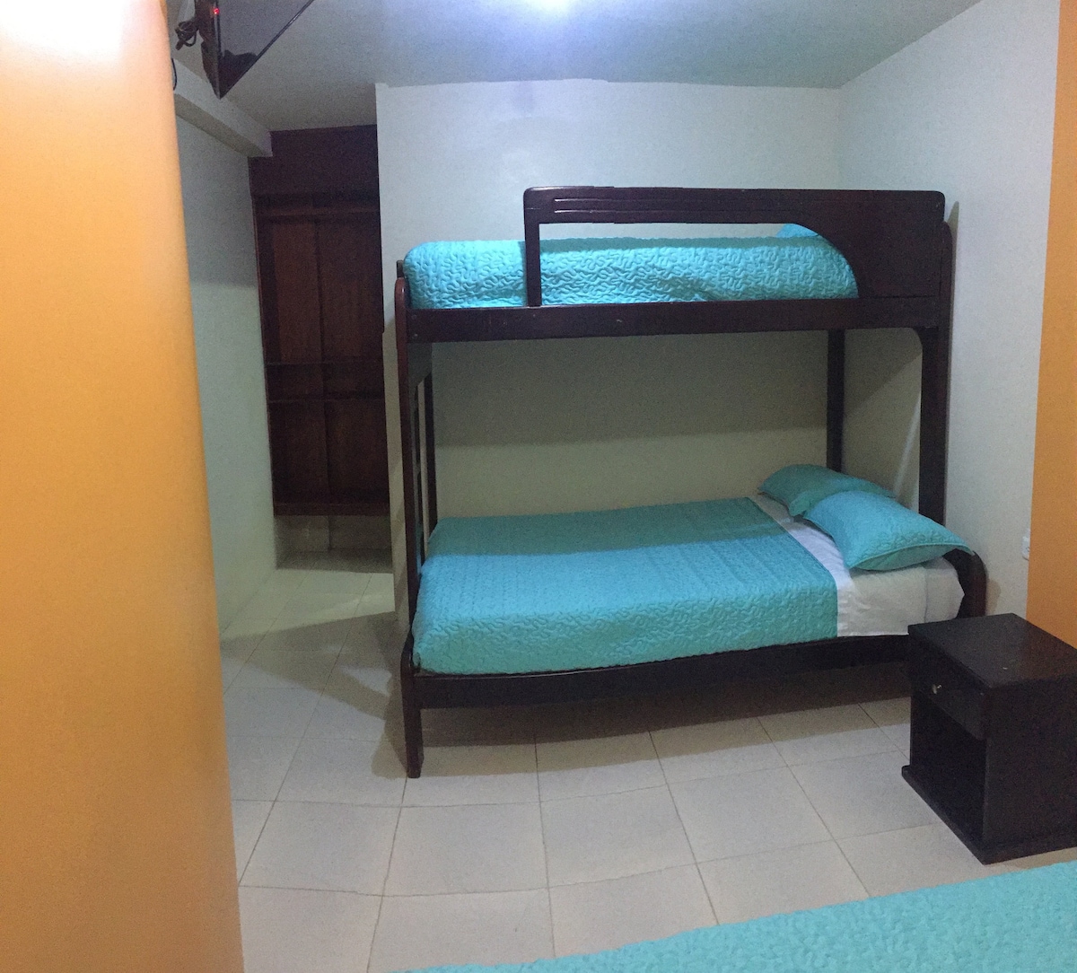 Keturvietis kambarys Baños de Agua Santa centre, labai arti restoranų, parduotuvių, kelionių organizatorių. Kambaryje yra dvigulė lova ir 2 viengulės lovos su atskiru vonios kambariu.