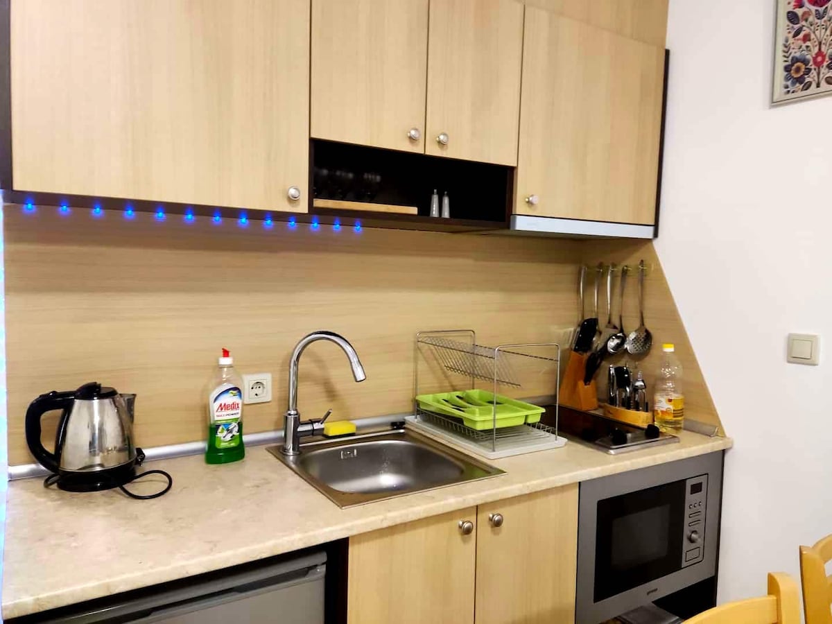 Erdvi, jauki, linksma ir įsimintina vieta, kurioje galėsite mėgautis kiekviena viešnagės minute. Netoliese rasite, ką galima nuveikti ištisus metus. Slidinėjimo trobelė yra vos už penkių minučių kelio pėsčiomis, o netoliese teikiamos visą parą veikiančios paslaugos. - Didelis balkonas su nuostabiu vaizdu į gražų Rilos kalną - PlayStation ir daugybė populiarių žaidimų, - 55 colių išmanioji televizija su HBO, „Netflix“, „Disney+“ ir daugeliu kitų - Didžiulė sofa su galimybe miegoti trims žmonėms - Slidinėjimo batų džiovintuvai