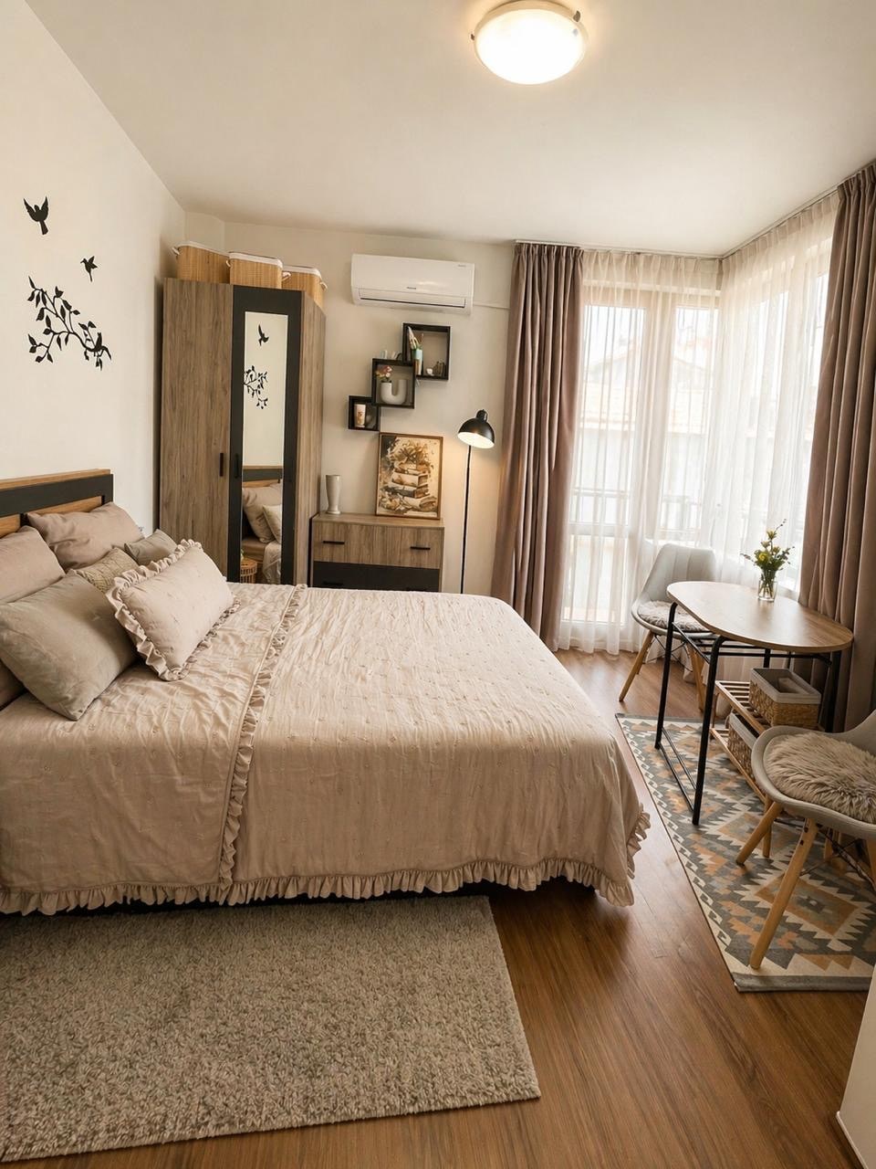 Nauja jauki, šviesi, erdvi studija šalia gondolos ir miško. Įrengta ir trumpalaikėms, ir ilgesnėms viešnagėms. Pilnai įrengta virtuvė ir darbo vieta darbui nuotoliniu būdu su sparčiu internetu. Baldai ir prietaisai yra nauji, butas nuomojamas nuo 2024 m. sausio. Komplekso kieme yra žaidimų aikštelė vaikams. Netoli miško komplekso, tinkamas nemokamai vaikščioti su augintiniais. Restoranai, bankomatai, prekybos centrai, prekybos centrai yra už kelių minučių kelio pėsčiomis.
