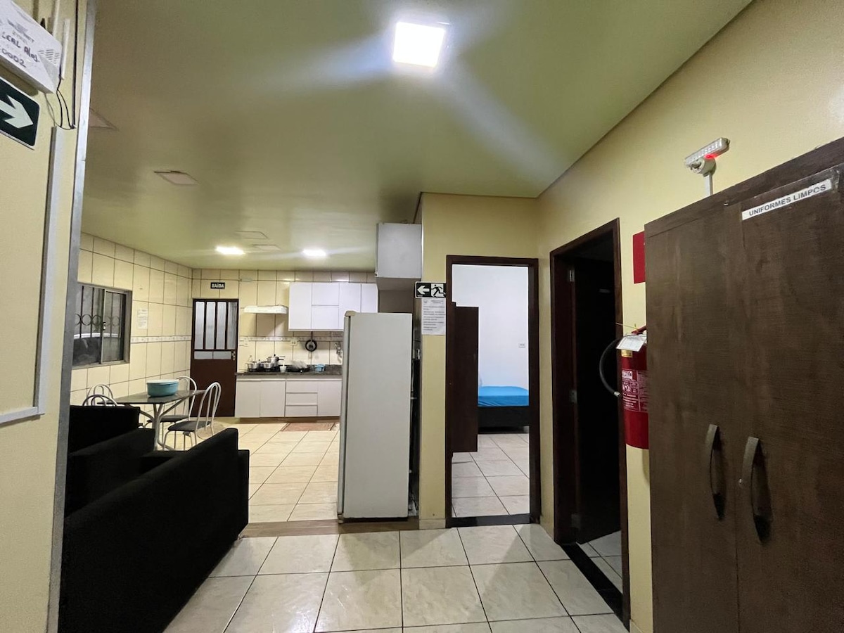 Apartamento completo, QUARTO, SALA, COPA, BANHEIRO além de área de serviço, estacionamento incluído, localização central, próximo a posto de combustível, padaria, supermercado, farmácia. Fornecemos roupa de cama completa, frigobar abastecido, secador de cabelo, ferro de passar, cafeteira elétrica, sanduicheira, Smartv com acesso a diversos streaming (NETFLIX/PRIME VÍDEO/ HBO/ DISNEY/GLOBO PLAY).