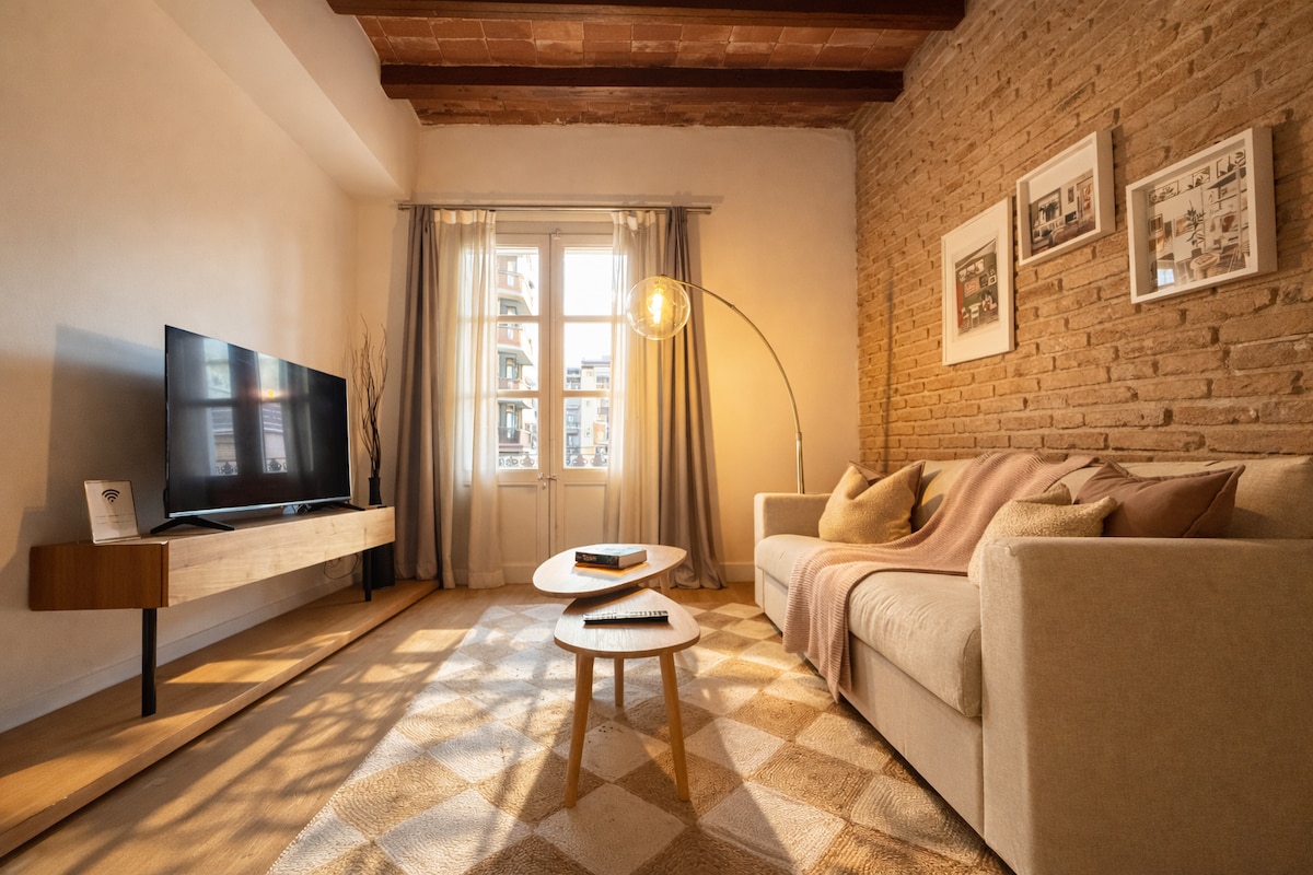 Šviesus 58 m2 butas sename pastate. Vos už 10 minučių nuo Gaudí Sagrada Familia ir penkių minučių pėsčiomis iki metro stoties (L5 Verdaguer). Talpa keturiems asmenims, idealiai tinka poroms ar šeimoms. Bendro naudojimo patalpose įrengta: virtuvė su mikrobangų krosnele, šaldytuvas, skalbimo mašina ir džiovintuvas, Smart TV; vienas kambarys su viena dvigule lova; viena svetainė su sofa-lova; vienas vonios kambarys. "Super WiFi" ryšys ir erdvūs langai, leidžiantys išgauti daug natūralios dienos šviesos.