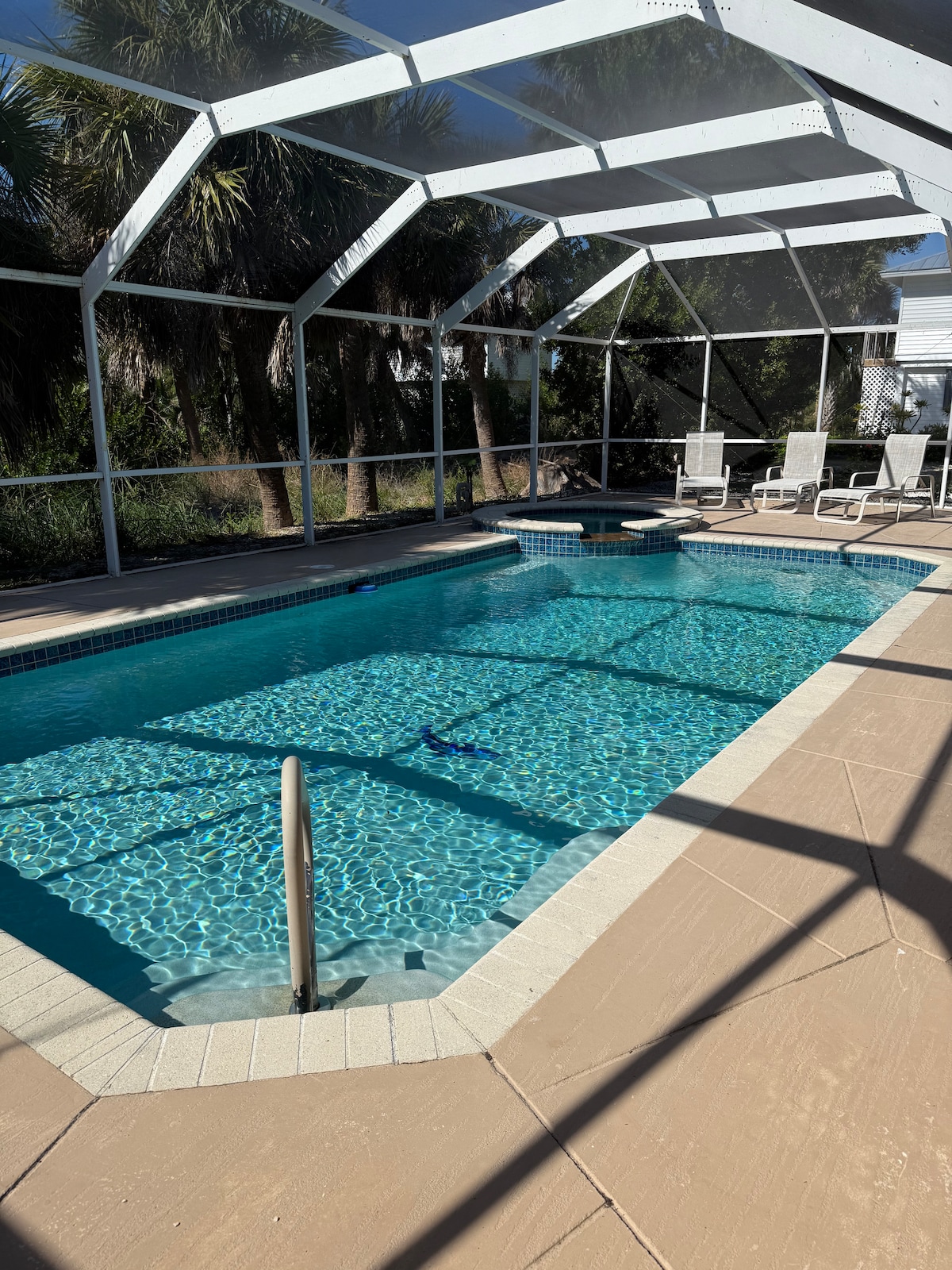 Welcome to Pelican House, a bright and spacious Florida getaway designed for family fun and total relaxation. This beautiful 4-bedroom, 2-bathroom home features a free heated pool and a sunny open layout, perfect for enjoying Cape Coral’s tropical lifestyle. Large sliding doors from the dining room, great room, kitchen, and master bedroom fill the home with natural light and provide direct access to the pool area — where you can swim, sunbathe, or enjoy meals al fresco. The screened lanai and c