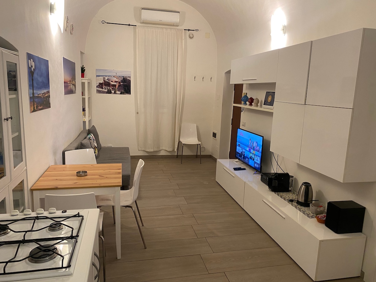 Butas yra Bario istoriniame centre netoli Katedros, Svevo pilies ir Porto di Bari. Namuose yra terasa su vaizdu į jūrą ir katedrą, balkonas, miegamasis su karaliaus dydžio lova, svetainė su dvigule sofa-lova, virtuvė ir vonios kambarys su dušu. Galite pėsčiomis aplankyti istorinį centrą, murattiano zoną ir madonnella zoną. Tai susisiekimas su oro uosto autobusu. Iki Petruzzelli teatro - 500 metrų, iki Katedros - 10 metrų, iki San nicola bažnyčios - 200 metrų
