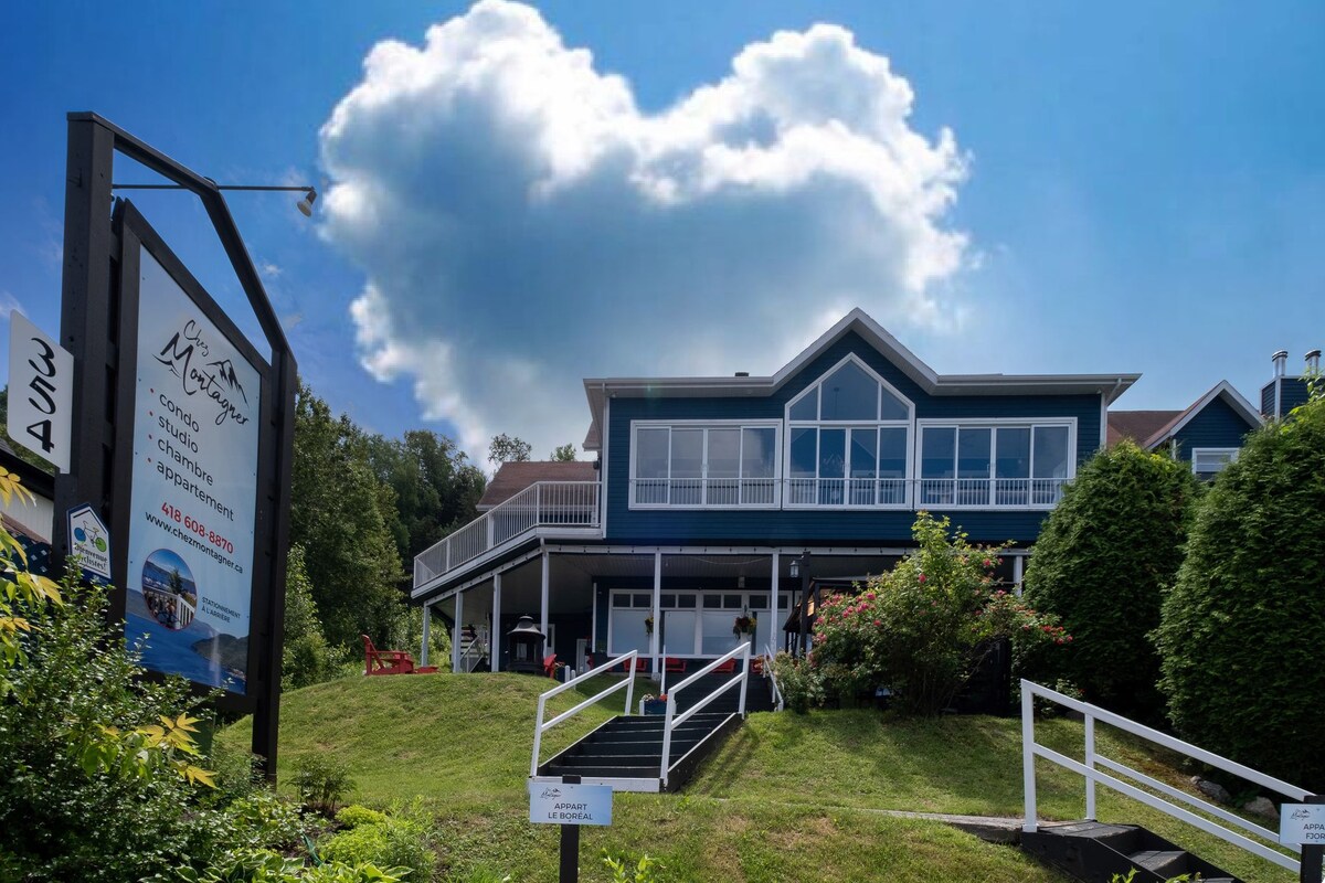 CITQ 084136 - Le Goéland sveikina jus jaukiame lizde su 3 miegamaisiais su kriaukle, svetaine, dviem dušo/tualeto kambariais ir pilnai įrengta virtuve, iš kurios atsiveria puikus vaizdas į Tadoussac įlanką ir St. Lawrence upę. Banginius galima pamatyti net iš bendrų erdvių. Džiaugsimės galėdami jums kuo geriau padėti, kad galėtumėte kuo geriau išnaudoti viešnagę mūsų gražiame šalies kampelyje.