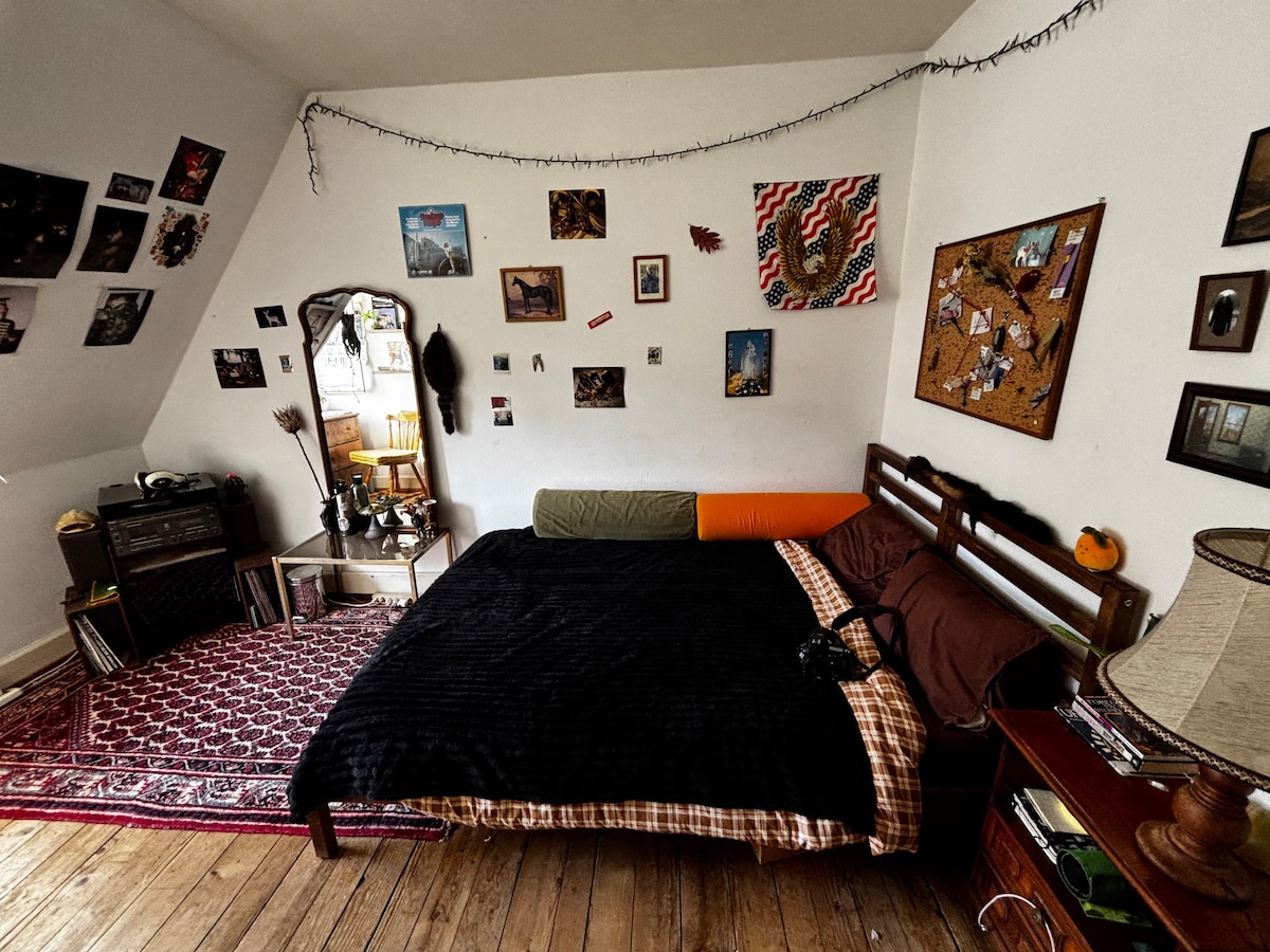 Stilingas, apšviestas seno pastato butas pačioje Bazelio širdyje – vos už 1 minutės kelio nuo Reino. Aukštos lubos, šilta ryto saulė iki popietės ir balkonas su vaizdu į kaimą sukuria ramią oazę miesto viduryje. Puikiai įrengta su tiesioginiu susisiekimu viešuoju transportu (11 tramvajus, 30 ir daugiau autobusų) – puikiai tinka Art Basel, Eurovizijai ar atsipalaidavimui mieste. Virtuvė ir vonios kambarys su karšto vandens šildytuvu, nuosava skalbimo mašina. Vienas kambarys lieka privatus.