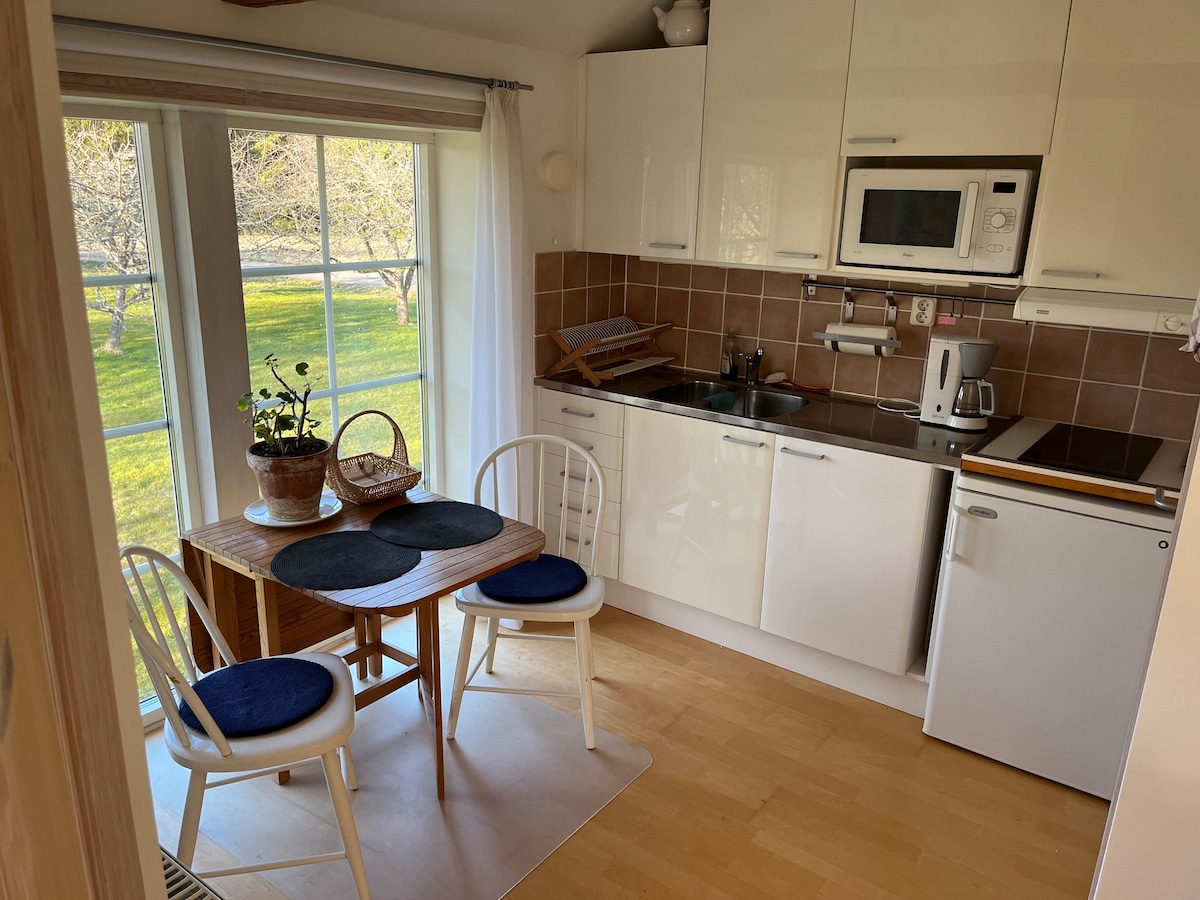 Sveiki atvykę į Prästgårdens B&B! Čia jūs gyvenate žavingoje Prästgården galerijoje, kuri kadaise buvo parapijos namai. Dabar pastatas pertvarkytas į erdvų maždaug 100 kv. m plius loftą su pilnai įrengta virtuve ir vonios kambariu su skalbimo stulpais. Atviro aukšto plane pirmame aukšte su aukštomis lubomis yra didelė ir atvira svetainė su sofos grupe ir valgomojo zona, kurioje yra daug vietos didelei šeimai. Viršuje, iš kurio atsiveria vaizdas į svetainę, yra dvigulė lova ir viengulė lova.