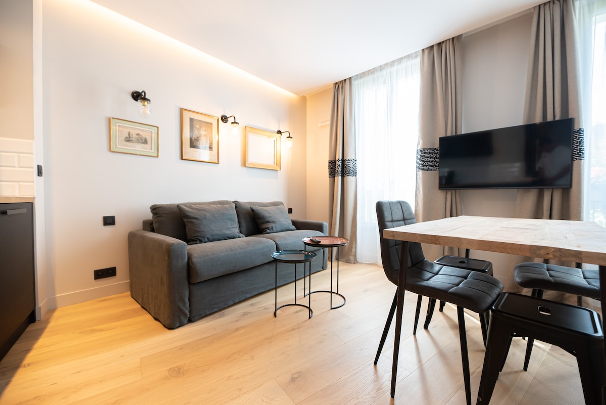 Sveiki atvykę į šį žavingą kokoną, kuriame kiekviena detalė sukurta taip, kad patirtumėte įsimintiną patirtį Paryžiuje. Įsikūrusi pačioje prestižinio 17-ojo Paryžiaus rajono širdyje, ši moderni studija su patogumais siūlo rafinuotą 34 kv. m gyvenamąją erdvę, sukurtą taip, kad jūsų viešnagė Šviesos mieste būtų nepamirštama.