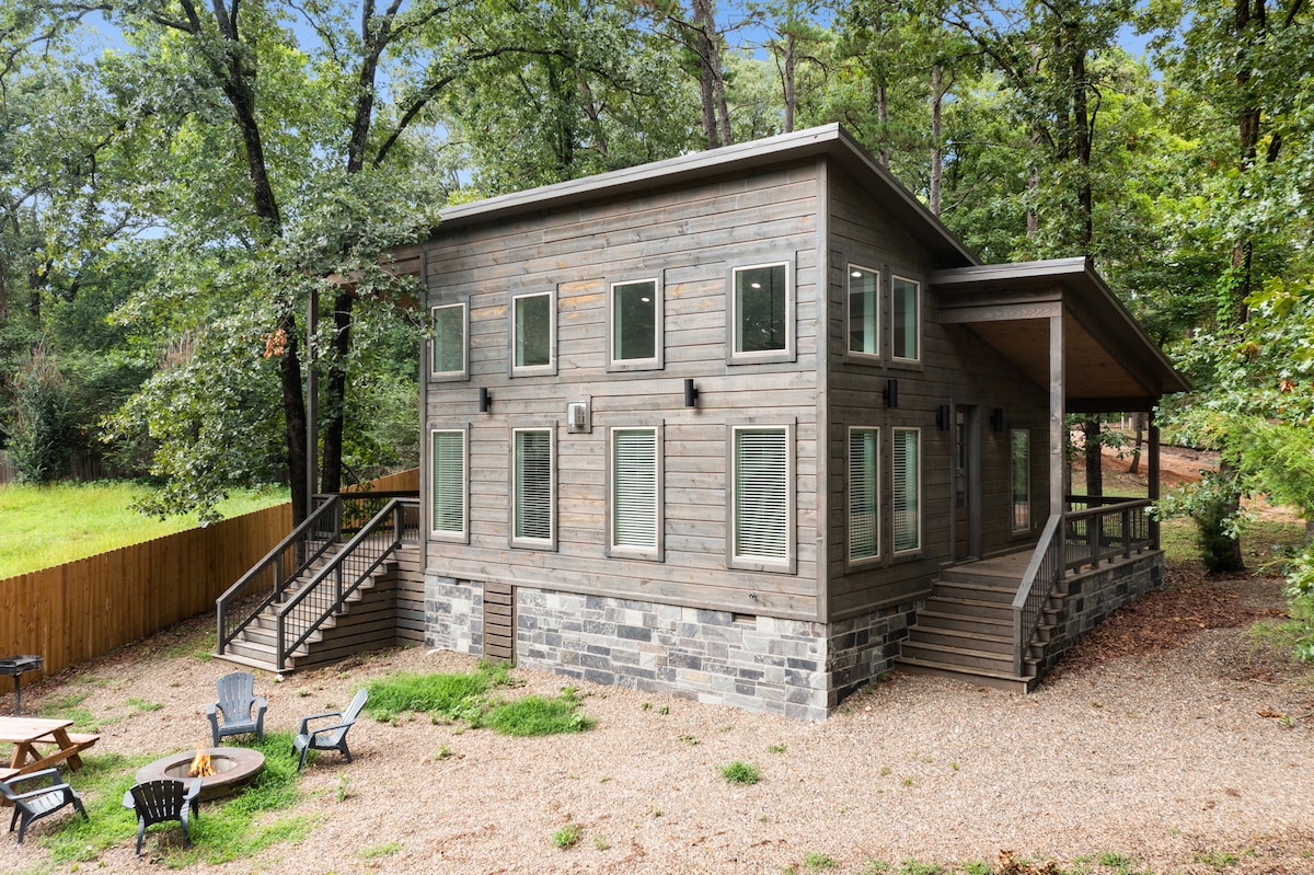 Romantiška prabangi trobelė 1,5 akro plote Broken Bow rajone. Yra pliušinė karališko dydžio lova, negabaritinė sūkurinė vonia, SPA stiliaus dvigubas dušas, mirkymo vonia, vidaus/lauko židiniai ir privatus takas. Puikiai tinka poroms, medaus mėnesiams ar mažoms šeimoms. Pastatyta 2022 m. su atviru išdėstymu, dizainerio miegamąja sofa ir aukščiausios klasės apdaila. Gamtos apsuptyje, tačiau vos už kelių minučių kelio pėsčiomis, vyno daryklų ir Broken Bow ežero. Įvertino Airbnb svečių mėgstamiausią, Rare Find ir 8x Superšeimininką. Užsisakykite dabar - savaitgaliai ir populiariausios datos bus greitos.