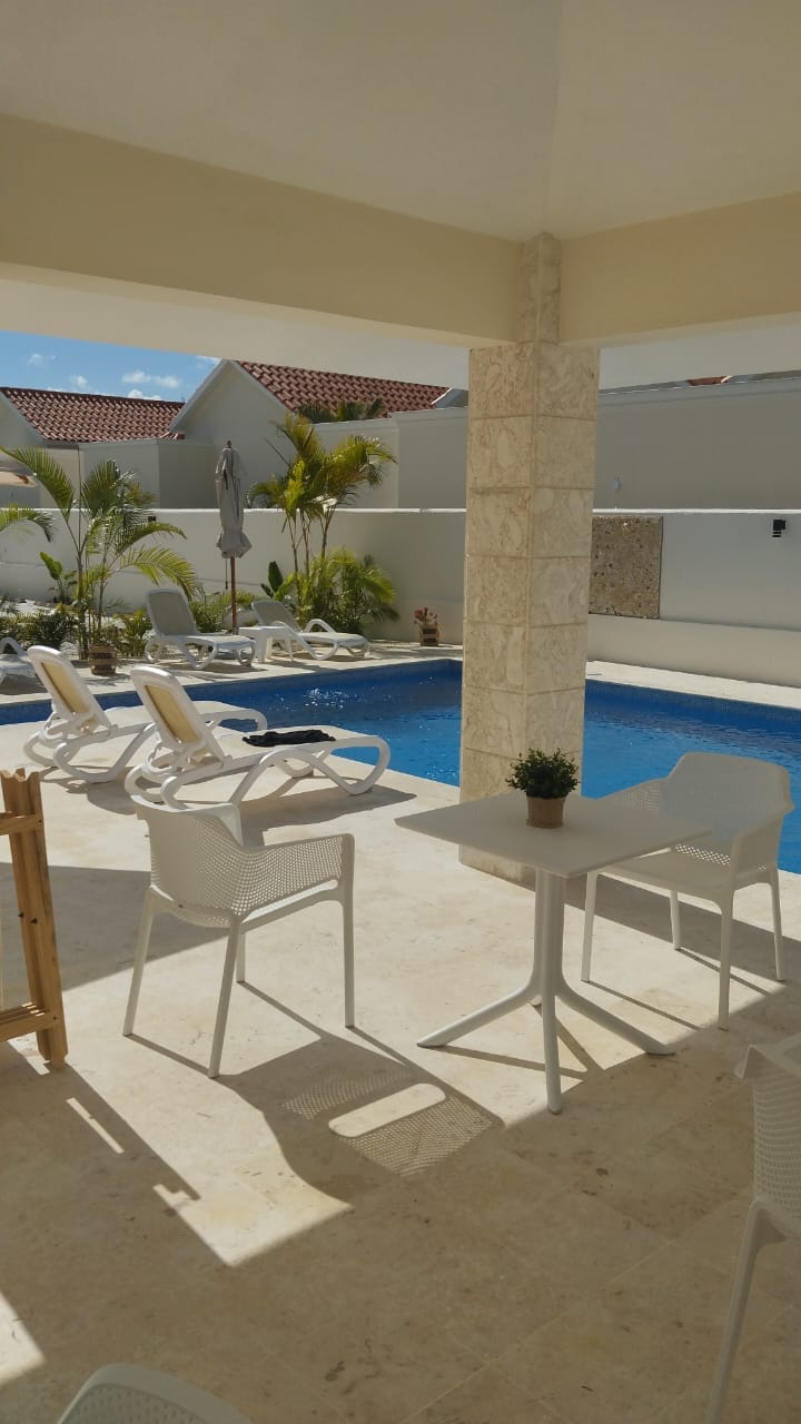 Este lugar lleno de estilo está cerca de todo lo imprescindible. tiendas ikea , san juan shopping mall , coco bongo , downtown punta cana , más de 10 restaurantes en la zona y el hotel 🏨 tiene restaurante a la carta , piscina abierta , salón multiuso y de estudio , canchas de padell , gym full equipado , playa a 3 minutos