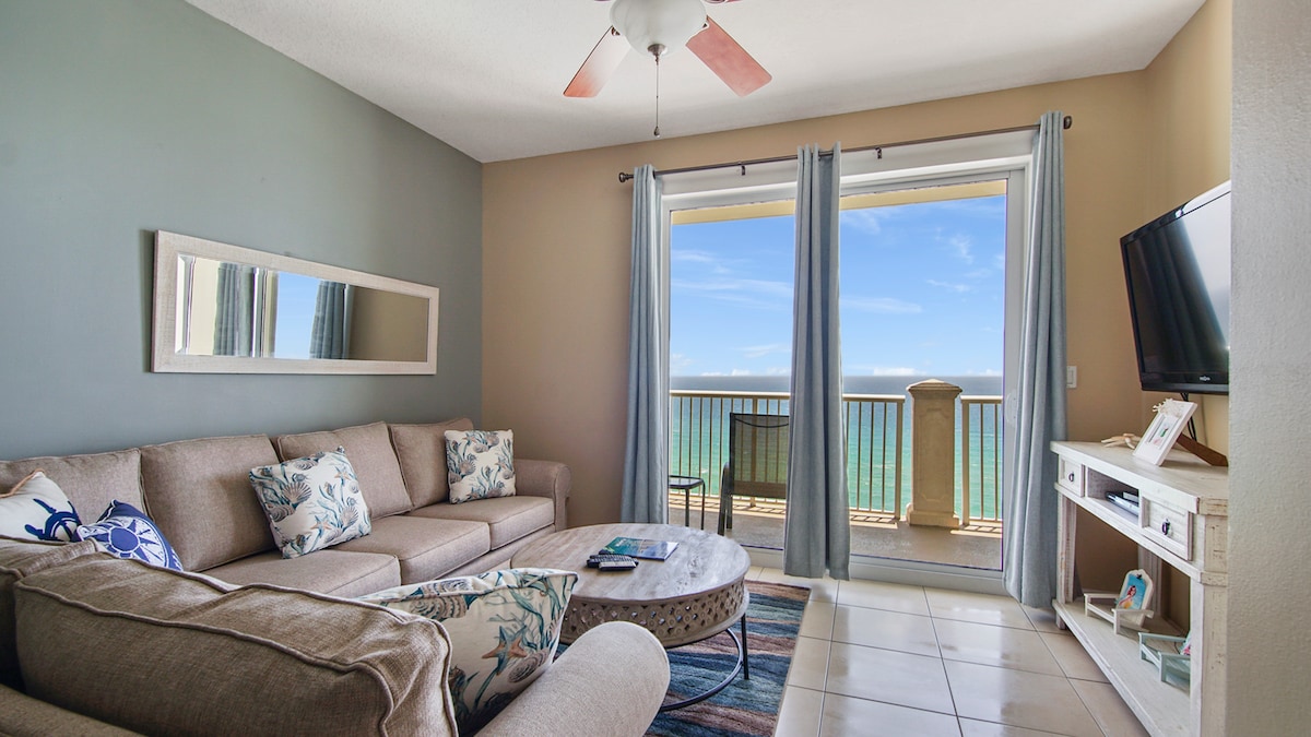 NEMOKAMOS PAPLŪDIMIO KĖDĖS/SKĖTIS, įtraukti į užsakymą iki {kovo 15 d.-spalio 31 d.}. Ateikite ir atsipalaiduokite šioje ramioje paplūdimio slėptuvėje. Šis būstas yra paplūdimyje, gražiame PCB!! Šiame būste yra karališko dydžio lova, visa virtuvė ir privatus balkonas. Iki Persijos įlankos žodžio, prieplaukos parko ir daugelio restoranų galima nueiti pėsčiomis. Taip pat yra paplūdimio kavinė ir sezoniškai šildomas baseinas!