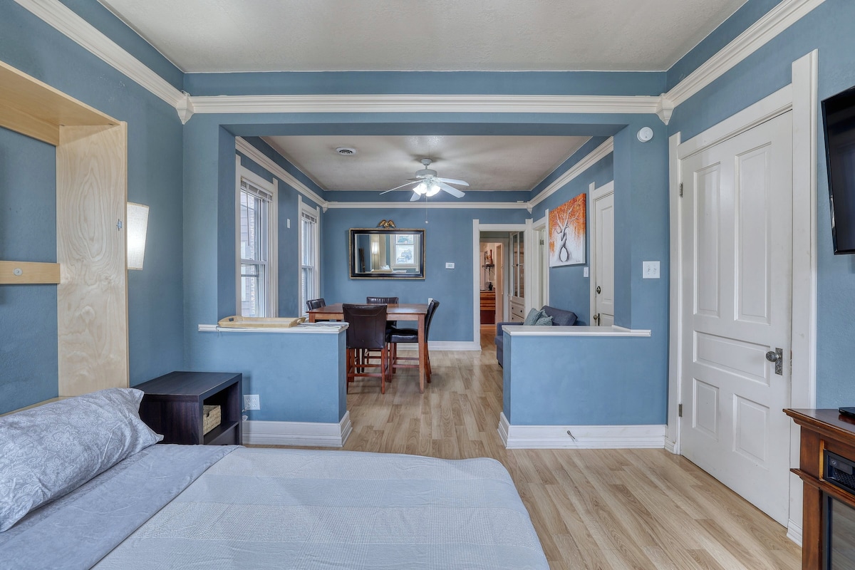 Sveiki atvykę į mūsų 1924 m. Amatininkų vasarnamį! Mūsų mūrinis vienaaukštis namas su „Prairie House“ stiliumi su Čikagos amatininko naujovėmis laukia jūsų viešnagės. Jums patiks viršutinis liukso numeris su privačiu įėjimu, dviem miegamaisiais, virtuve ir pilna vonia. Naujai perdarytos porceliano marmurinės grindys įkvepia prabangą su kiekvienu žingsniu kartu su naujuoju „Stripto“ skyriumi, 50colių televizoriumi su transliacija, 100% medvilnine patalyne ir rankšluosčiais, virtuve, kurioje gausu privilegijų ir prietaisų, ir vešlios žalumos, kad oras būtų švarus.