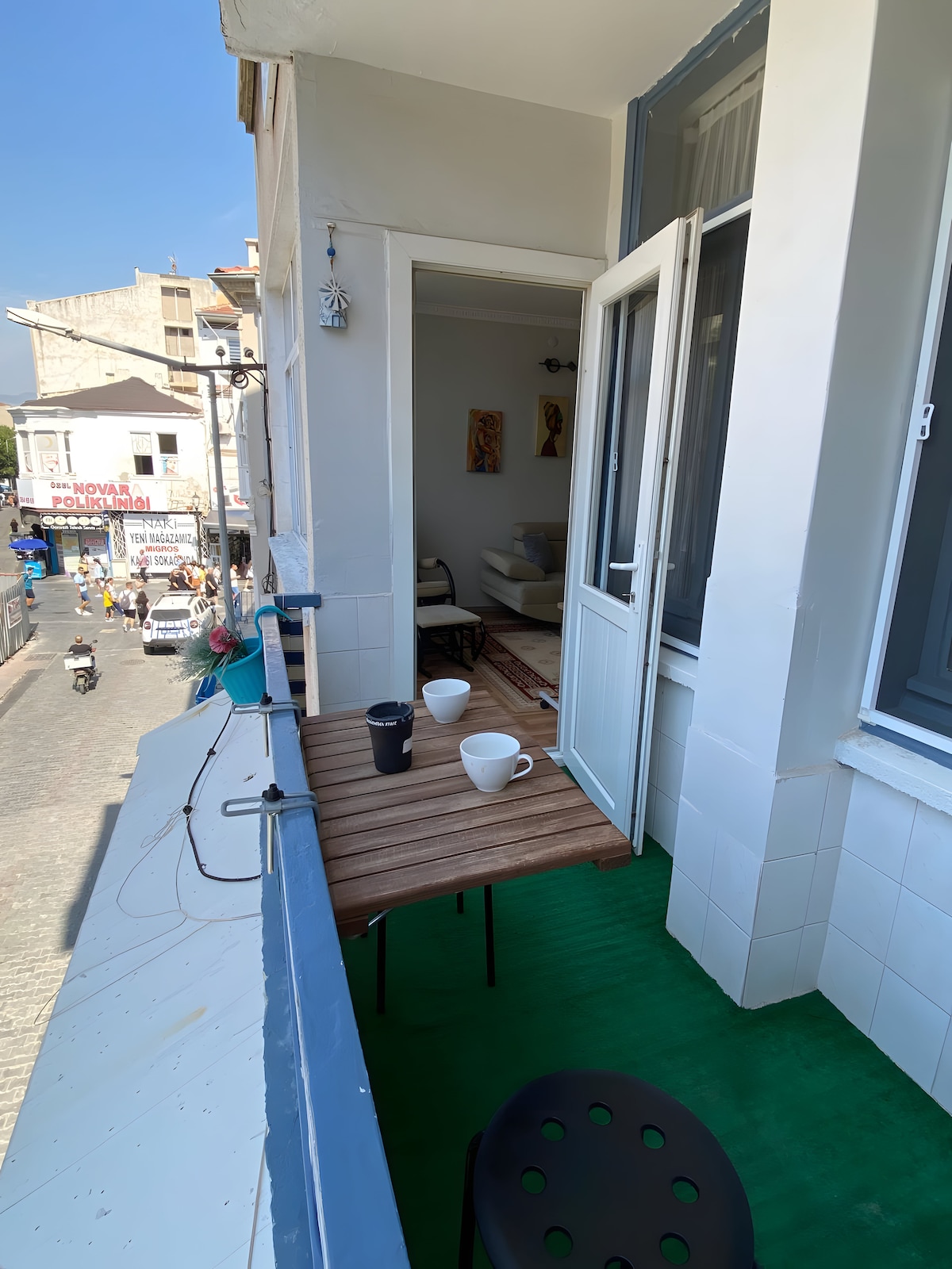 Mėgaukitės miesto gyvenimu mūsų moderniuose apartamentuose, esančiuose vos už 3 minučių kelio pėsčiomis nuo Karşıyaka krantinės. ☀️ Gerkite rytinę kavą erdvioje terasoje ir stebėkite saulėlydį vakare. 🚃 Tramvajus, traukinys ir keltas yra pėsčiomis pasiekiami atstumai, o iš oro uosto važiuoja tiesioginis traukinys. 🏡 Su 2 miegamaisiais, pilnai įrengta virtuve, greitu belaidžiu internetu ir jaukia svetaine jausitės kaip namie. ❗ Atkreipkite dėmesį: pastate nėra lifto, tačiau keli laipteliai veda į modernų butą su žavinga terasa.
