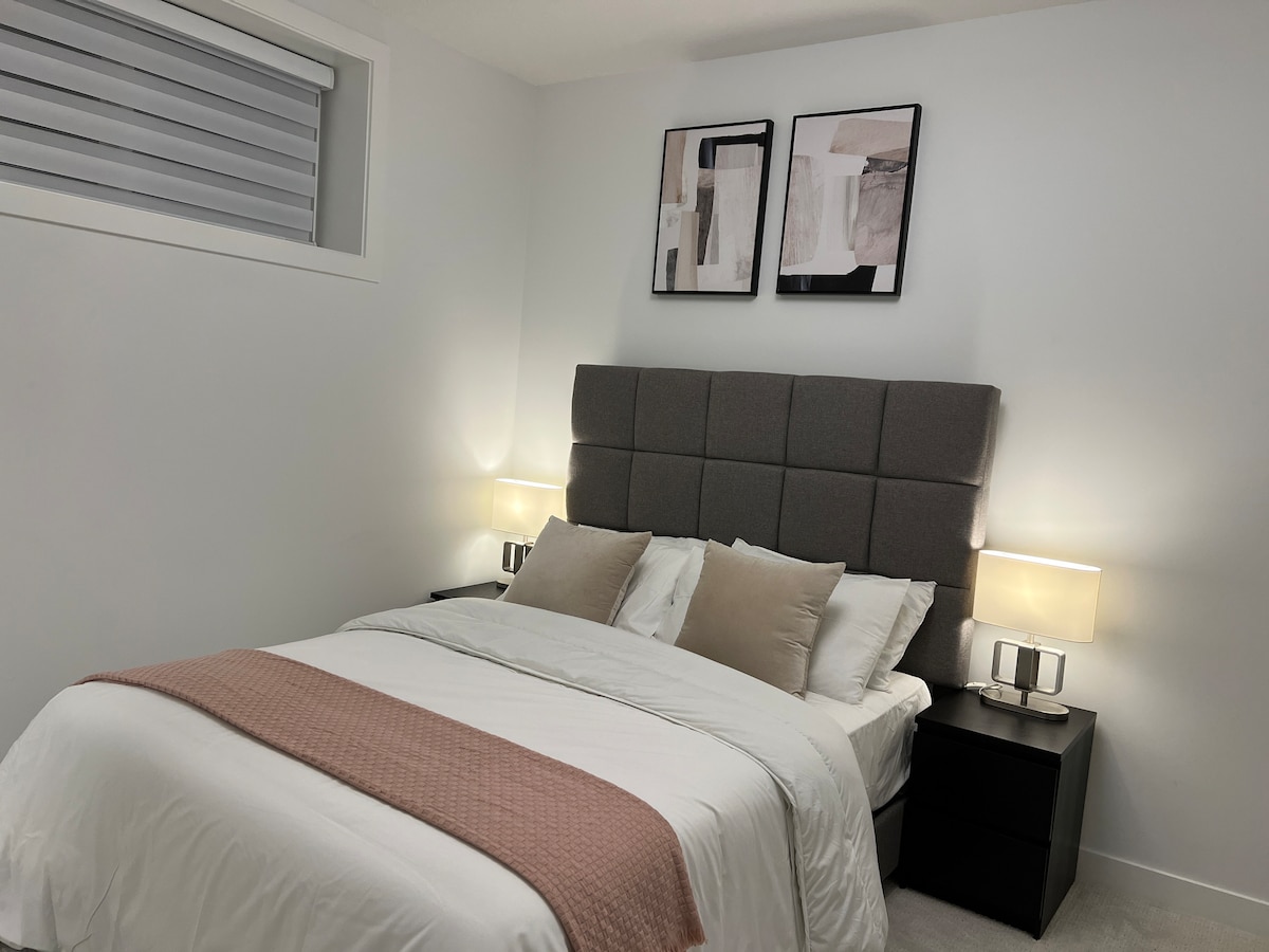 Updated Lower-Level Private Suite with Private Entrance Welcome to your perfect getaway in NW Calgary! This fantastic, fully private suite offers all the comforts of home. With 9-foot ceilings and large windows, the space feels bright and inviting, offering a comfortable retreat. We’ve had the pleasure of hosting guests from around the globe, from short visits to extended stays. We’re excited to welcome you and make your time in Calgary unforgettable!