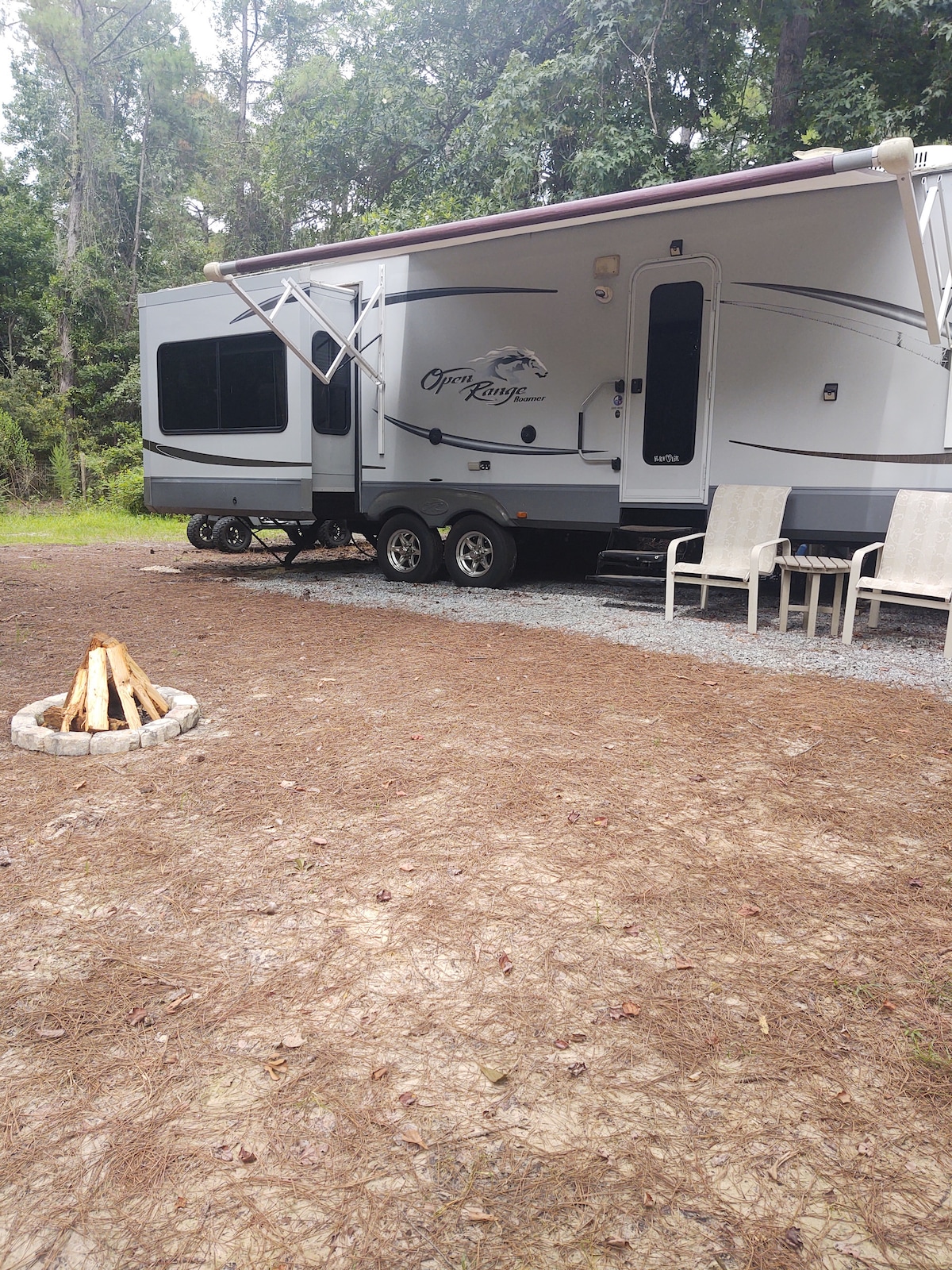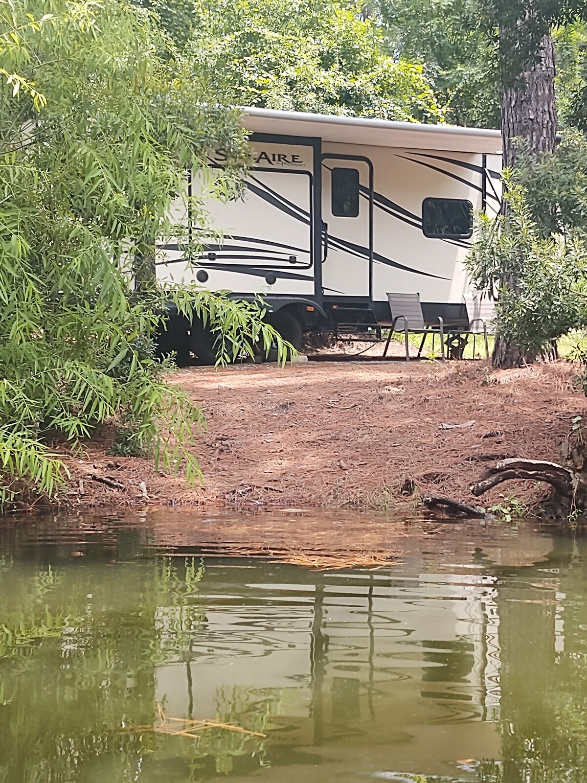 Ramus ir privatus. RV yra 2017 m. 38 pėdų namas. Jis pastatytas šalia 1/2 akro tvenkinio su žuvimis, antimis, ospreiais, egretais, daugybe kitų laukinių gyvūnų. Turite savo verandą virš tvenkinio. Yra pėsčiųjų takų. Įsikūręs maždaug už 3 mylių nuo Bluffton centro ir už 5 mylių nuo Hilton Head Is. Viso dydžio šaldytuvas ir visa virtuvė. Yra didelė markizė. Taip pat yra arklių, ožkų, kiaulių, ančių, vištų, šeškų, kūdikių racoons ir skvošo.