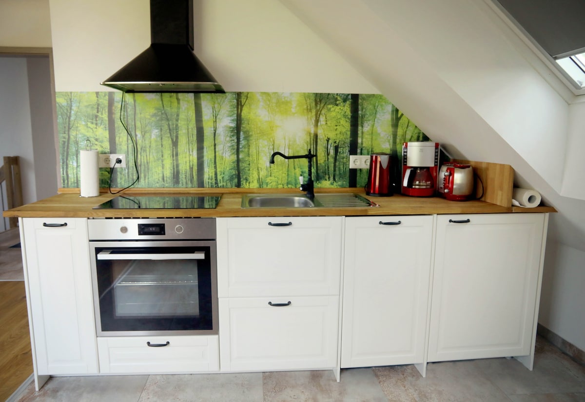 Palėpės butas 20 minučių automobiliu iki Potsdamo ir Berlyno ir 30 minučių traukiniu iki BERO. Erdvi, pilnai įrengta dizainerio sukurta virtuvė*, vonios kambarys su Agape Vieques vonia ir atitinkama kriaukle * , miegamasis su 2,70 m lova * , sporto salė gali būti naudojama kaip antroji miegamoji zona. Štai 1,80 m dvigulė lova*projektorius su programėle, skirta „NETFLIX“, „Disney +“ ir „Amazon Prime Login“, žaislams, prekybos centrui su kepyklų ir mėsininkų gėrimų turgumi* plaukimo ežerais ir žygiais pėsčiomis