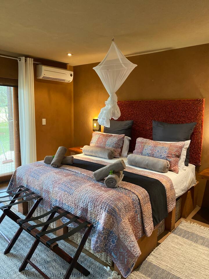 The establishment offers a secluded, romantic setting amidst the riverine forest, providing breathtaking mountain views. Each of the bedrooms include a private deck and an outdoor shower, ensuring a tranquil, spacious, and romantic experience. Ideal for couples, friends, family seeking an unforgettable getaway, the establishment features a 10-seater jacuzzi, an infinity pool with mesmerizing views of the bush, Guests can enjoy the boma and braai facility for delightful evenings under the stars.
