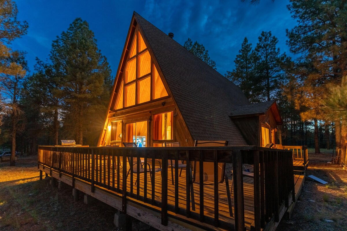 @AFrameFlagstaff yra mikronamas „A-Frame“, esantis 1,5 akro plote nacionaliniame miške. Rodoma „American Eagle Outfitters“ kampanijoje visame pasaulyje. Tinka šunims. AC. Epic glamping and stargazing. 10 min. iki istorinio miesto centro/Route 66. 15 min. iki Walnut Canyon, Sunset Crater, Wupatki National Parks, NAU, AZ Snowbowl. 30 min. iki Meteor Crater ir Sedona. 90 min. iki GRAND CANYON, Horseshoe Bend, Antelope Canyon ir Petrified Forest. 2,5 val. iki Monument Valley. Netoliese yra mūsų skelbimas „Tiny Mountain View Sauna Cabin“