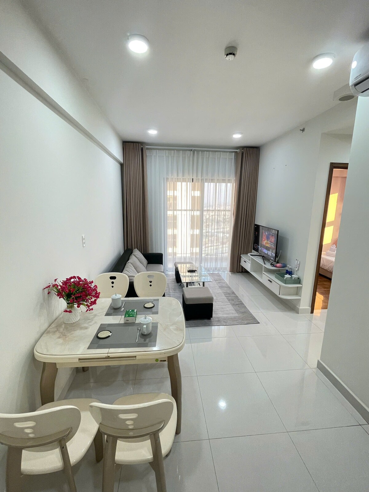 Erdvus ir stilingas 2BR butas The Glory, Thu Dau Mot New City. Puikiai tinka šeimoms, grupėms ar verslo viešnagėms. Mėgaukitės moderniu dizainu, visa virtuve, išmaniuoju televizoriumi, sparčiu belaidžiu internetu ir vaizdu į miestą. Miegamieji su patogiomis lovomis ir natūraliu apšvietimu. Puiki vieta netoli prekybos centro „Aeon Mall“, Becamex bokšto, parkų ir kavinių. Saugus pastatas su baseinu, sporto sale ir visą parą veikiančia registratūra. Atsipalaiduokite, dirbkite ar tyrinėkite – jūsų tobuli namai toli nuo namų!