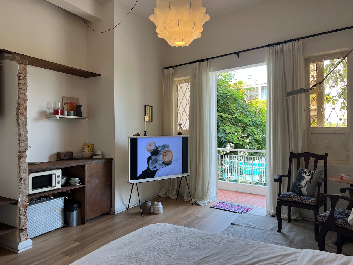 **Leidžiama tik rankinė fotografija ar videografija: jokių trikojų, jie subraižo grindis** - Iš didelių langų atsiveria vaizdas į tamarindų medžiais apaugusią gatvę ir priešais Prancūzijos kolonijinę eros architektūrą vos už kelių žingsnių nuo gyvybingiausio Vietnamo miesto širdies. - Apsistokite mano bute, esančiame trečiame aukšte ( be lifto ), ramiame, švariame rajone. - Bute gali patogiai apsistoti 2 žmonės. - Viena karališko dydžio lova su patogiu čiužiniu. - 55 colių „Android“ televizorius su gražia garsiakalbių sistema suteikia jums gerą atmosferą filmams arba atsipalaiduoti muzikoje naktį. Galite naudotis „Chromecast“ ir „Apple TV 4K“. - IMac 22 colių galite ieškoti informacijos su sparčiuoju internetu. - Virtuvėje pilna kavos, arbatos ir virtuvės prietaisų, kad būtų galima gaminti maistą namuose su indais, lėkštėmis, peiliais , šakutėmis. - Taip pat paruošta skalbimo/džiovinimo mašina. Transportas į mano būstą: - Taksi: iš Tan Son Nhat tarptautinio oro uosto taksi važiuojate į Nguyen Hue gatvę (1 miesto centras, HCM miestas) ir esate už 1 minutės kelio nuo mano namų. - Mano namų „ 90 Nguyən Huա street “ pastate gausu butikinių kavinių ir meno galerijų. Skirkite laiko pasimėgauti miesto esenomis. - Autobusas: jei svarstote galimybę naudotis viešaisiais autobusais, eikite į 109 autobusą ir atvykite į Ben Thanh stotį, tada iki mano namų yra apie 5 minutės pėsčiomis. Jūsų naudojimui yra visa įranga ir įranga. Daugelį metų dirbu maisto ir gėrimų pramonėje bei esu laisvai samdomas fotografas HCM mieste; todėl nedvejodami pasikalbėkite su manimi arba leiskimės į kavinę, kad aptartume vietinę virtuvę, vaizduojamąjį meną, fotografiją tikėtinu atveju, kuris jus gali sudominti. Dideli langai žvelgia per tamarindo medžiais apsuptą gatvę ir pereina į prancūzų kolonijinės eros architektūrą, vos už kelių žingsnių nuo gyvybingiausio Vietnamo miesto širdies. Pačiame pastate gausu butikinių kavinių ir meno galerijų. Jūs tiesiog apsistojate pačioje Hošimino širdyje. 3 min. iki Bitexco finansinio bokšto, 10 min. iki Ben Thanh centrinės autobusų stoties ir taksi yra tiesiai priešais jūsų duris. Pasiruoškite tyrinėti Saigoną – Tolimųjų Rytų perlą!
