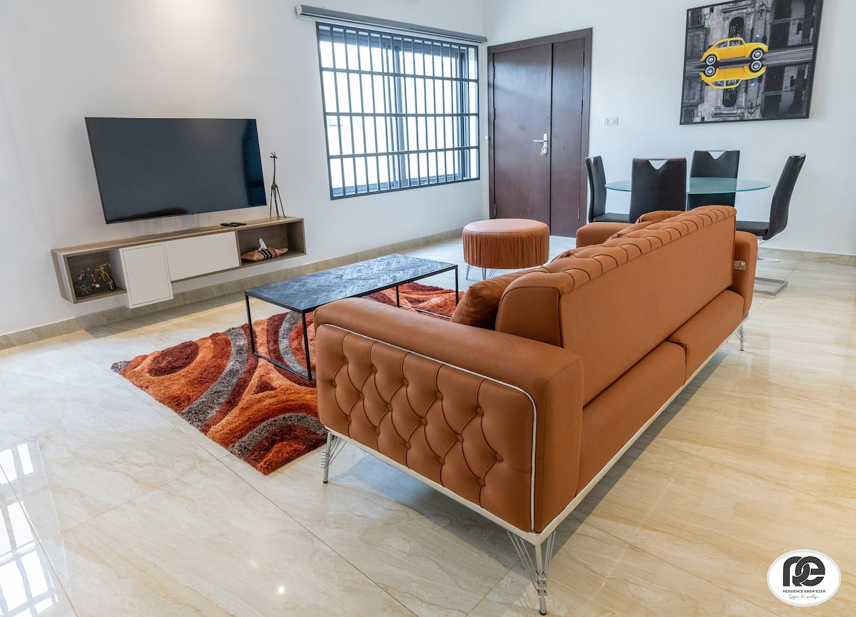 Sveiki atvykę į ramybės uostą! Šis puikus F2 butas, esantis ramioje ir saugioje vietoje, sujungia komfortą, modernumą ir eleganciją, kad pasiūlytų jums nepamirštamą viešnagę! Šiame būste yra asmeninis įėjimas, sodas, jauki svetainė ir elegantiškas bei atpalaiduojantis miegamasis: mėgaukitės jaukia lova su viešbučio kokybės patalyne ramioms naktims. Vieta: JAK RAJONAS, AKPKAKPA, KOTONU ELEKTROS ENERGIJOS IŠLAIDOS NEĮSKAIČIUOTOS (žr. toliau)