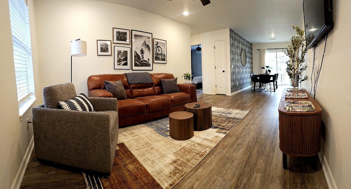 Pažiūrėkite! 5 ŽVAIGŽDUČIŲ vieta! Tiesioginė prieiga prie tako. Grįstas ir vienas takelis. Mūsų itin mieli kotedžo stiliaus namai siūlo tiesioginę prieigą prie Crystal Bridges muziejaus tako, esančio šalia(Slaughterpen System ir Greenway). Takas veda į Krištolo tiltų muziejų ir eina pro terasą su vaizdu į muziejų. Tas pats asfaltuotas takas taip pat veda į Komptono sodus ir aikštę, leidžiančią mūsų lankytojams patekti į viską, ką gali pasiūlyti Bentonvilis, neliesdamas gatvės. Nuomojame ir kitoje gatvės pusėje.