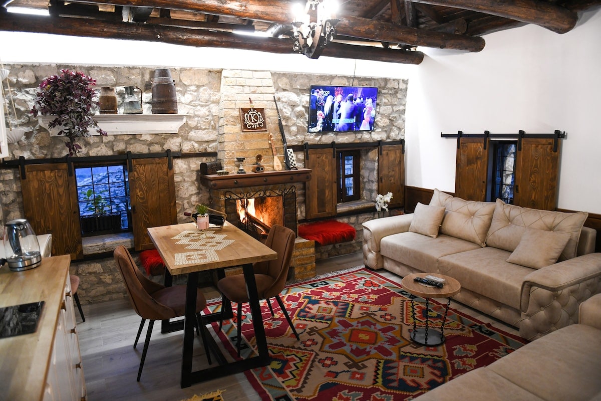 Atsitraukite į praeitį viloje „Villa Maria“ - 300 metų senumo lobyje, įsikūrusiame 2500 metų senumo Berato pilies sienose. Ši unikali vila su 3 miegamaisiais sujungia istorinį žavesį ir modernų komfortą, iš kurios atsiveria nuostabūs vaizdai į Tomorro kalną ir paslėptas akmenimis grįstas alėjas. Mėgaukitės ramia viešnage su jaukia virtuve, vienu vonios kambariu ir privačiu sodu su poilsio zona, puikiai tinkančia atsipalaiduoti tyrinėjant turtingą Berato kultūros paveldą.