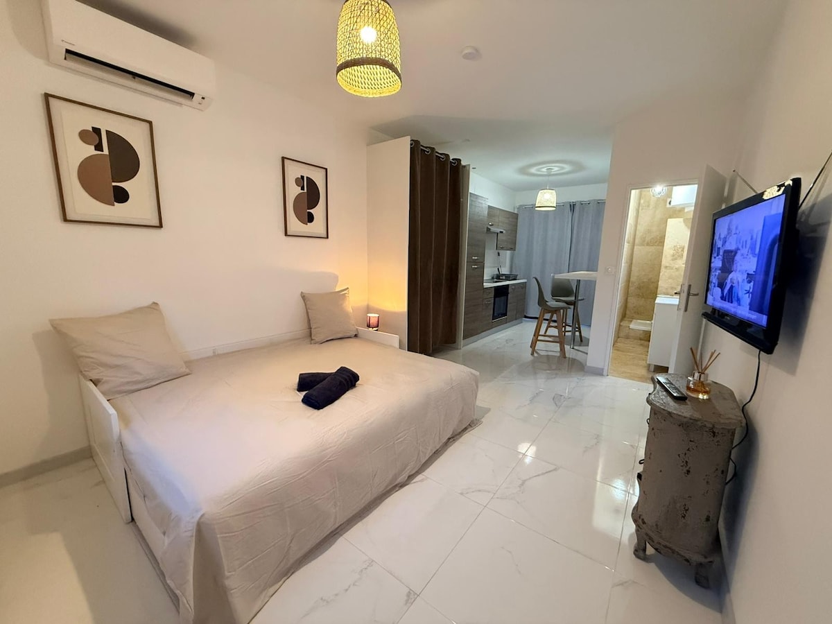 Atraskite šį brangakmenį 💎La-fare les-oliviers, netoli Provanso Ekso. Studija 30 m2, modernus vonios kambarys. Wi-Fi, Netflix jūsų patogumui. Už 15 km apžiūrėkite garsųjį zoologijos sodą🦁🦏🐆🦒, gyvybingą turgų Pélissanne, pasirodymus Mistral uoloje netoli La Barben. Laste 🍷 vietiniai vynai gražiuose rūsiuose, jūra už 🌊maždaug 20 km. Visos parduotuvės, 1 min. pėsčiomis, autobusų stotelė🚏 2 min. Mėgaukitės ☀️ spindinčia saule ir daugybe užsiėmimų. Užsisakykite nepamirštamam Provanso potyriui!