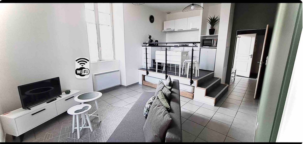 8 Rue du Gouvernement. 40 m2 bet kurios komandos apgyvendinimas. Jis įsikūręs Dole miesto centre, ramioje vietoje. 8 Rue du Gouvernement, o ne 1 Netoli Grevy aikštės, už 50 m nuo pirmųjų restoranų. Už 100 m nuo turizmo biuro. Prie Jura vartų, kad galėtumėte atrasti mūsų gražų regioną. Bet taip pat patogu verslo kelionėms, traukinių stotis yra už 300 m. Vidinis kiemas dviračiams statyti. Nuomojame tris dviračius už 11 eurų per dieną.
