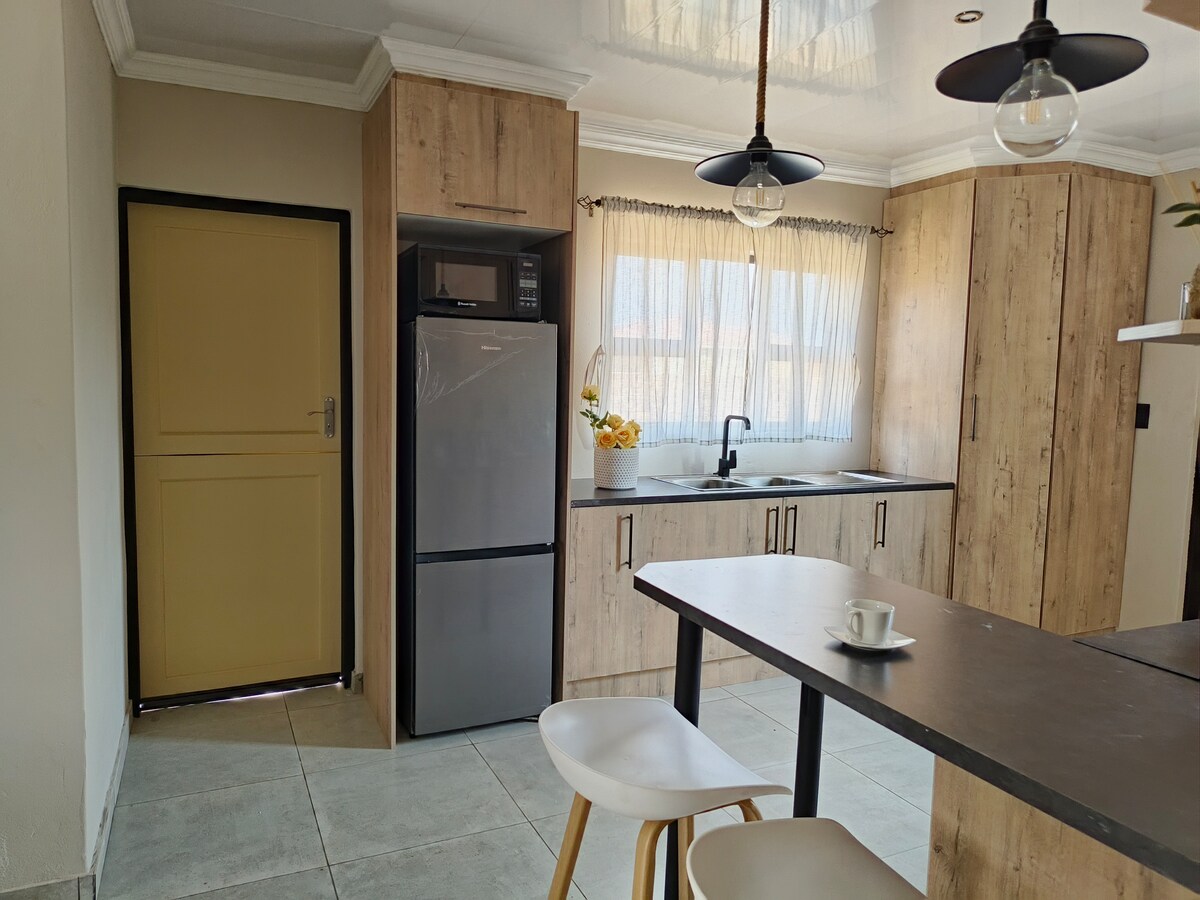 Mėgaukitės puodeliu kavos šio gražaus buto verandoje su vaizdu į vaizdingą sodą. Jis yra šalia N17, suteikiantis jums prieigą prie visų miesto parduotuvių ir restoranų, tačiau vis tiek suteikiantis jums privatumo, kurio reikia atsipalaiduoti ir mėgautis viešnage. Šiame prabangiame 90 kv. m bute yra svetainė , pilna Dstv, be dangtelio, karališko dydžio XL lova ir vonios kambarys su dušu ir kampine vonia. Jame yra pilnai įrengta virtuvė maisto ruošimui. Įeikite į rojų ir sugadinkite save tuo, ko nusipelnėte...