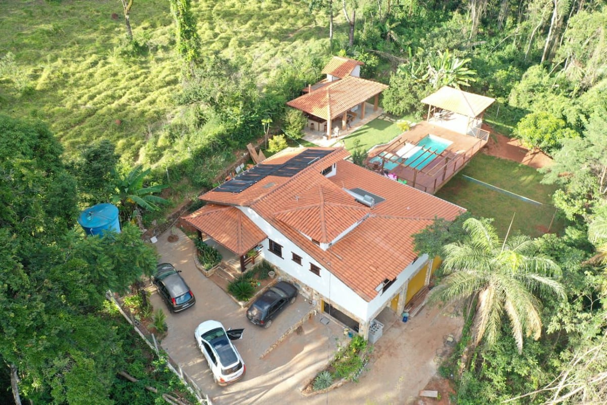 Kaimiškas mūsų mažo kampelio stilius suteikia daug jaukumo. Be pagrindinio namo su malkomis kūrenamu židiniu, taip pat yra nepriklausoma gurmaniška erdvė su dujine virykle, šaldikliu, aušintuvu, medine orkaite, sala, kepsnine, lavabu, dušu ir baseinu su kriokliu. Jis yra už 35 KM NUO Belo Orizontės ir už 1 km nuo Casa Branca kaimo (smulkaus verslo). Puiki orientacinė vieta ekskursijoms po krioklį, Inhotim institutui (20 km) ar net sprogimui ir grįžimui į istorinį Ouro Preto miestą ( 65 km).
