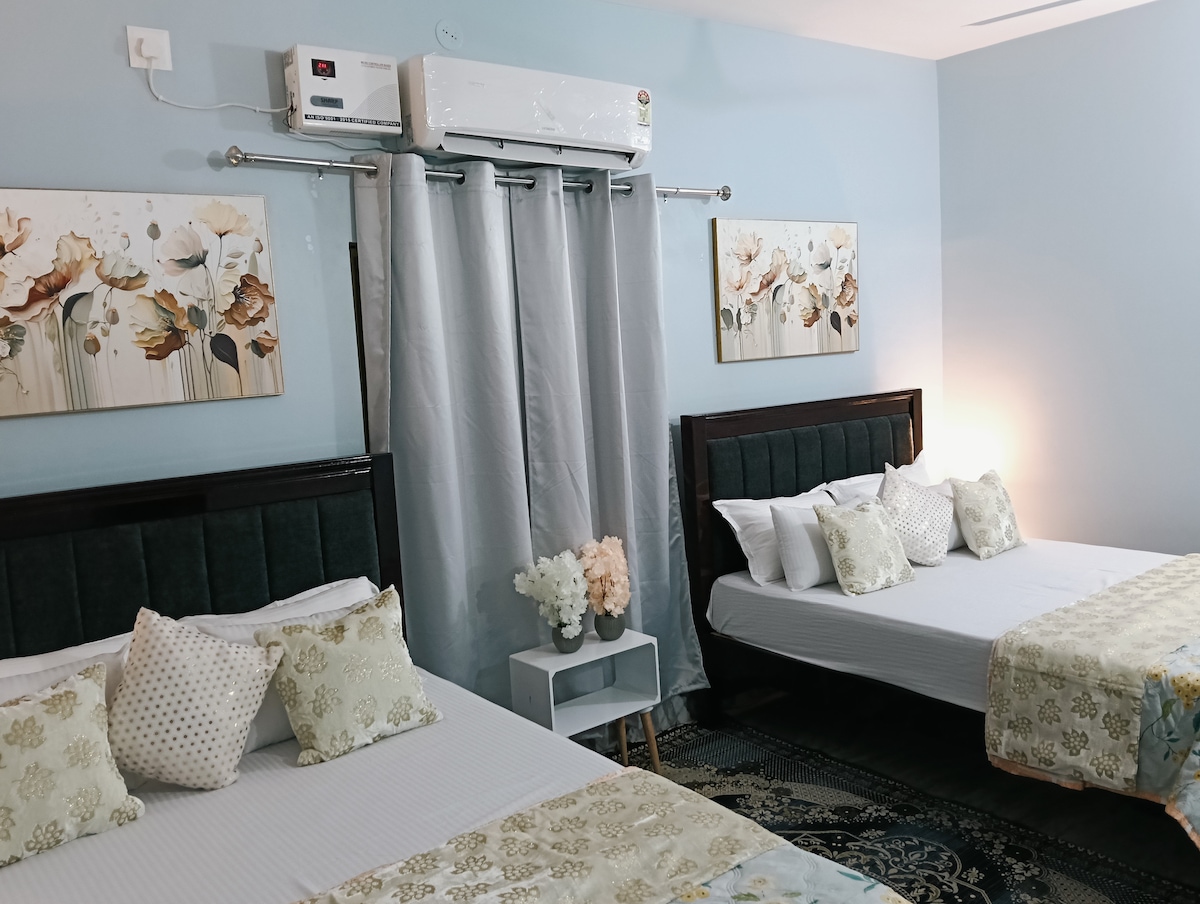 Pilnai įrengta jauki privati studija 1 miegamasis su visais namų patogumais, esančiais toli nuo namų. Virtuvėje yra vandens valytuvas, indukcinė viryklė ir mikrobangų krosnelė su automatiniu kaminu, karšto vandens geizeris ir 1,5 tonos oro kondicionierius su žemo lygio lova ramiam miegui naktį. Salėje yra Diwan lova su sofa ir 44 colių išmaniuoju televizoriumi pramogoms su 100 Mbps Wi-Fi jūsų darbui iš namų. Pamirškite rūpesčius šioje erdvioje ir ramioje erdvėje.