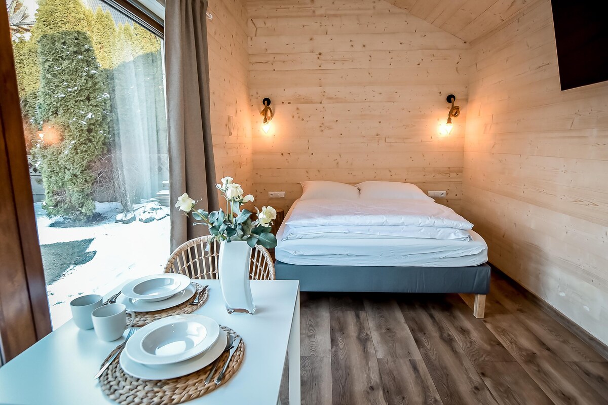 Kotedžas yra ant kalnų, pilnai įrengtas, Kotedžas yra 35 m2 ploto su viskuo, ko reikia normaliam veikimui. Tualetas, dušas, virtuvė sujungta su svetaine ir miegamuoju, iš svetainės galite išeiti į balkoną, iš kurio matosi visas valymas ir Bielskie Tatras. Ant pastato stogo yra didelė terasa, kurioje galite užsiimti joga arba atsipalaiduoti gražiomis dienomis. Pirtis ir kubilas už papildomą mokestį Balis 150 PLN – 2,5 val. Pirtis 150 PLN – 2,5 val.