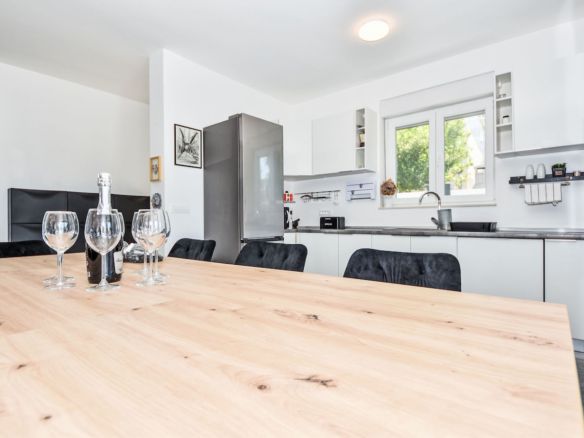 ✨ Dizainerių suprojektuotas dviejų aukštų butas • Šildomas baseinas • Lauko terasa Sveiki atvykę į O'live Residence 2 – gražiai suprojektuotą dviejų aukštų poilsio namą Bibinje su moderniu komfortu, gausiu natūraliu apšvietimu ir puikiomis lauko erdvėmis. Gražiai įsikūręs netoli D-Marina ir vos už kelių minučių kelio automobiliu iki Zadaro centro, šis butas puikiai tinka šeimoms ar grupėms, ieškančioms komforto, patogumo ir stiliaus.